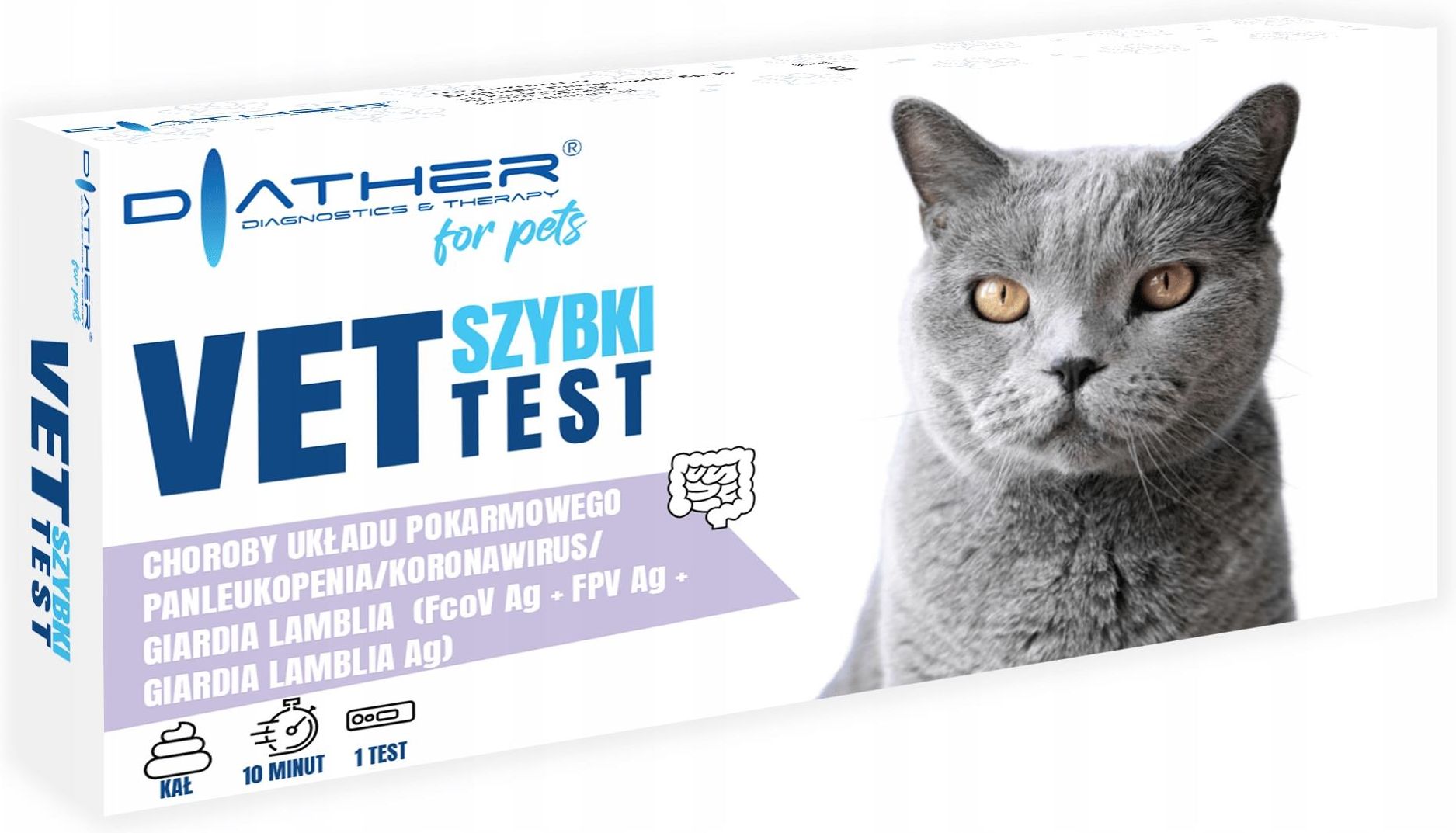 VET – TEST Choroby układu pokarmowego – koronawirus/panleukopenia/giardia lamblia (FCoV Ag + FPV Ag + Giardia lamblia) (1 sztuka) domowy, kasetkowy test do wykrywania antygenów kociego koronawirusa (FCoV), antygenów wirusa panleukopenii (FPV) oraz antygenów Giardia lamblia w próbkach kociego kału. …