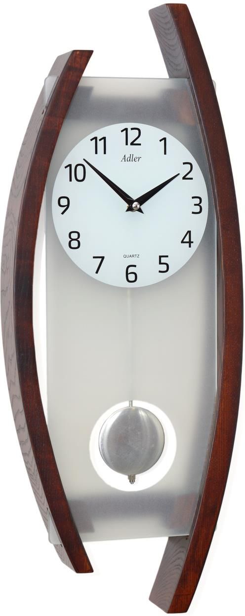 Zegar wiszący drewniany z wahadłem Adler 20230 Nowoczesny zegar ścienny z mechanizmem zasilanym na baterie. Obudowa składa się z dwóch kawałków drewna które "obejmują "szybę, tracza na szkle mlecznego. Pasuje do wnętrz tak nowoczesnych jak i bardziej tradycyjnych. Wysokość: 59 cm Szerokość: 23 cm Głębokość: 6 cm Waga: 1500 g Materiały: drewno, szyba szklana mleczna. Metalowe wskazówki i wahadło. Tarcza: szklana, mleczna, cyfry czarne, arabskie Wskazówki: godzinowa i minutowa, wskazówki metalowe koloru czarnego Wahadło: metalowe z okrągłą soczewką Mechanizm zegara: kwarcowy, 2 baterie R6 (paluszki; nie załączone) Mocowanie na ścianie: okrągły otwór w drewnianej ściance tylnej 2 lata gwarancji
