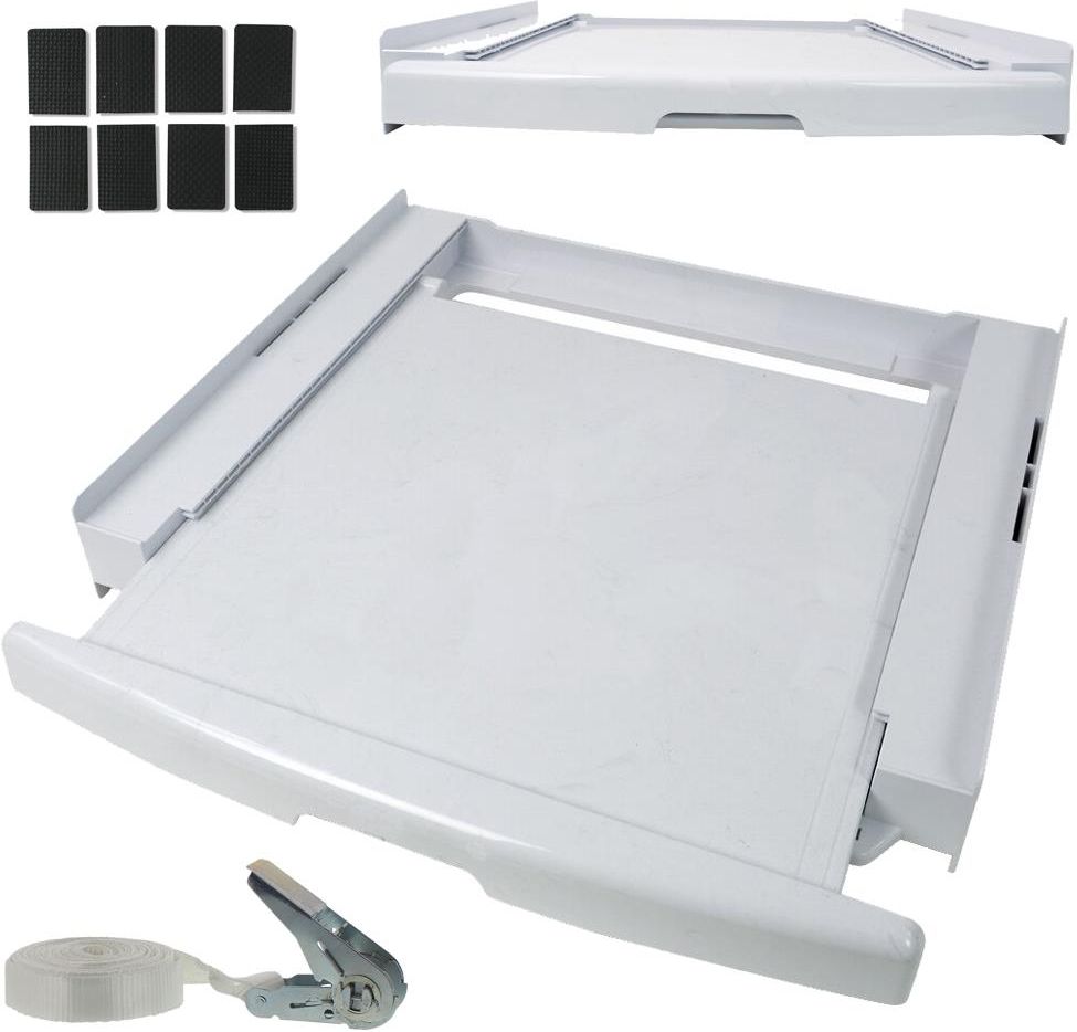 Łącznik Scanpart uniwersalny 0150120138 Łącznik pralko-suszarka z szufladą Pasuje do wszystkich typów pralek i suszarek Stabilna konstrukcja wytrzymała do 20 kg Cechy i funkcje Łącznik Scanpart z wysuwaną półką Łącznik do pralek i suszarek Scanpart to rozwiązanie, które w łatwy sposób pozwala zaoszczędzić miejsce. Wysoka jakość wykonania oraz wytrzymała konstrukcji pozwala na bezpieczne umieszczenie suszarki. Łącznik nie tylko jest łatwy w instalacji, ale nie wymaga do montażu żadnych dodatkowych narzędzi. Dodatkowo w celu zapewnienia stabilnej konstrukcji do zestawu dołączony został pas, którym spina się oba urządzenia.Łącznik posiada dodatkową wysuwaną półkę, która ułatwia ładowanie i wyjmowanie prania z urządzeń. Pasuje do wszystkich modeli typów pralek i suszarek ładowanych od przodu o wymiarach do 60x60 cm. Specyfikacja techniczna Producent Scanpart Kolor Biały Rodzaj produktu Łącznik Typ Uniwersalny Wysuwana szuflada Tak Przeznaczenie Do pralek i suszarek Udźwig półki 20 kg Wymiary 604 mm (szer.) x 93 mm (wys.) x 557 mm (dł. minimalna) / 934 mm (dł. maksymalna) Zawartość zestawu Łącznik Scanpart 0150120138 Instrukcja obsługi Pas mocujący 8 podkładek amortyzujących