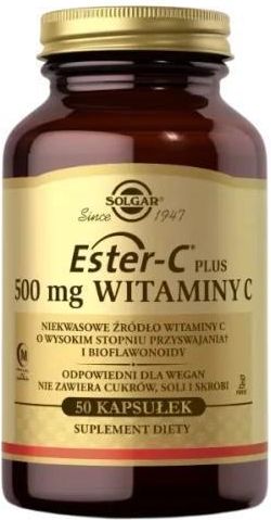 Ester-C plus 500 mg Witaminy C Solgar Suplement diety Produkt z polskiej dystrybucji 50 kapsułek Zalety: ✅ Niekwasowe źródło witaminy C i bioflawonoidy, ✅ Specjalna forma witaminy C, roz­puszczalna zarówno w wodzie, jak i tłuszczach, ✅ Ta forma wita­miny C jest przyjazna dla przewodu pokarmowego. …