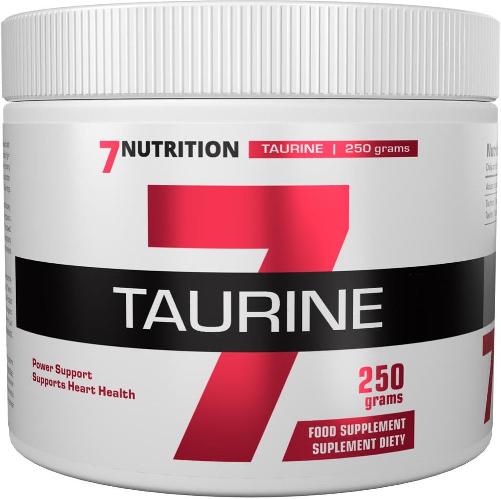 7Nutrition Taurine to suplement diety zawierający wysokiej jakości, czystą taurynę w formie proszku, która została stworzona z myślą o osobach aktywnych fizycznie. Tauryna jest aminokwasem, który naturalnie występuje w organizmie, odgrywając wiele istotnych ról metabolicznych. Tauryna uczestniczy w transporcie elektrolitów oraz wpływa na nawodnienie komórek. Ponadto przyspiesza regenerację mięśni po treningu, poprawia koncentrację i skupienie oraz wspiera pracę serca i układu nerwowego poprzez stabilizowanie ciśnienia krwi oraz wspomaganie przewodnictwa nerwowego. ZALECANY SPOSÓB SPOŻYCIA 1 porcję (1 g = 2 miarki) rozpuścić w 150-200 ml wody. Nie należy przekraczać zalecanej porcji dziennej do spożycia. Uwagi Suplement diety. Nie może być stosowany jako zamiennik bądź substytut zróżnicowanej diety. Nie należy przekraczać zalecanego dziennego spożycia. Nie stosować w przypadku uczulenia na którykolwiek ze składników produktu. Produktu nie należy podawać matkom karmiącym oraz kobietom w ciąży. Zalecany jest zrównoważony sposób żywienia i zdrowy tryb życia. Przechowywać w suchym miejscu, w temperaturze pokojowej, w miejscu niedostępnym dla małych dzieci. Chronić przed bezpośrednim działaniem promieni słonecznych. Składniki 1 porcja (1 g, 2 miarki): Tauryna 1000mg SKŁADNIKI: Tauryna