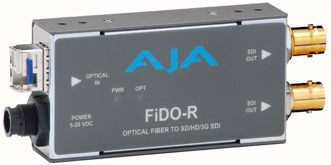 AJA FiDO Seria produktów FiDo to konwertery SDI/Światłowód. Pozwalają one na transmisję sygnałów SDI, HD-SDI oraz 3G SDI na dystansie do 10 km za pomocą pojedynczego kabla światłowodowego ze złączami LC, ST lub SC w zależności od modelu konwertera. Konwertery FiDO spełniają wszystkie istotne specyfikacje SMPTE, są wytrzymałe, różnorodne i sprawdzają się doskonale przy użyciu wewnętrznym jak i plenerowym. Dzięki 9 różnym modelom, FiDO oferuje niedoścignioną elastyczność i oszczędność. Dwu-kanałowe modele pozwalają na konwersję 2 kanałów - idealne dla 3D, dual-link SDI lub 2 kompletnie niezależnych kanałów SDI (np. SD, HD oraz 3G mogą być pomieszane w każdej kombinacji). Konwertery FiDO oferują również elektryczną izolację sygnałów, pomocną przy eliminacji sprzężeń. Konwertery FiDO posiadają kompaktową obudowę, dzięki czemu mogą być używane w ciasnych przestrzeniach np. za szafami rack, w wozach transmisyjnych lub zatłoczonych pomieszczeniach. FiDO-R: jedno-kanałowy konwerter światłowodu do SDI SD/HD/3G z podwójnym wyjściem SDI Dane techniczne: Formaty: 3Gb, 1.5Gb, 270Mb, Auto Select We/wy wideo: SDI (SMPTE 259/292/296/424), 2x BNC 1x pojedynczy światłowód, złącze LC (FiDO-R, FiDO-T) 1x pojedynczy światłowód, złącze ST (FiDO-T-ST, FiDO-R-ST) 1x pojedynczy światłowód, złącze SC (FiDO-T-SC, FiDO-R-SC) 2x pojedynczy światłowód, złącza LC (FiDO-2R, FiDO-2T, FiDO-TR) Cable equalization (wejścia BNC, coax 1694): 270mb, 400m 1.5Gb, 200m 3Gb, 140m We/wy Return Loss (BNC): >15db, 270Mb - 3Gb Wyjścia optyczne: długość fali: 13-10nm moc wyjściowa: -2dBm (typowa) Wymiary: 117 x 43,5 x 21,6mm Zasilanie: Od +5V do +20V zasilacz DWP-U Pobór mocy: 1,5W – modele: FiDO-T, FiDO-R, FiDO-T-ST, FiDO-R-ST, FiDO-T-SC, i FiDO-R-SC 2,5W – modele: FiDO-2R, FiDO-2T, FiDO-TR Gwarancja: 5 letnia gwarancja producenta