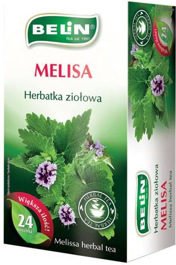 Środek spożywczy Herbata z ziół melisy pomaga ukoić nerwy, działa także nasennie, jest także zalecana przy leczeniu depresji. Oprócz działania uspokajającego, melisa pomaga również uśmierzyć ból głowy i bóle menstruacyjne. Ale to wciąż nie jej jedyne zastosowania. Melisa pomaga przy rozstrojach żołądka i przewodu pokarmowego, schładza organizm podczas gorączki, pobudza trawienie, a zioło w postaci maści łagodzi zranienia i ukąszenia przez owady. Melisę można używać także w kuchni. Świeże listki zioła, dodane do potraw i sałatek, nadają im cytrynowy posmak. Zastosowanie: ma zastosowane w leczeniu bezsenności, poprawia trawienie, uspokaja, łagodzi bóle miesiączkowe i mdłości w ciąży. Sposób użycia: saszetkę umieścić w filiżance, zalać gorącą wodą i zaparzać 5-8 minut. Jedna saszetka przeznaczona jest do przygotowania jednej filiżanki naparu. Składniki: wysuszone i rozdrobnione ziele melisy. Ważne wskazówki: Przechowywać w suchym i chłodnym miejscu. Masa netto: 36g (24 x 1,5g). Producent: BELIN ZPCh ul.Sucholeska 34/36 Poznań 60-479