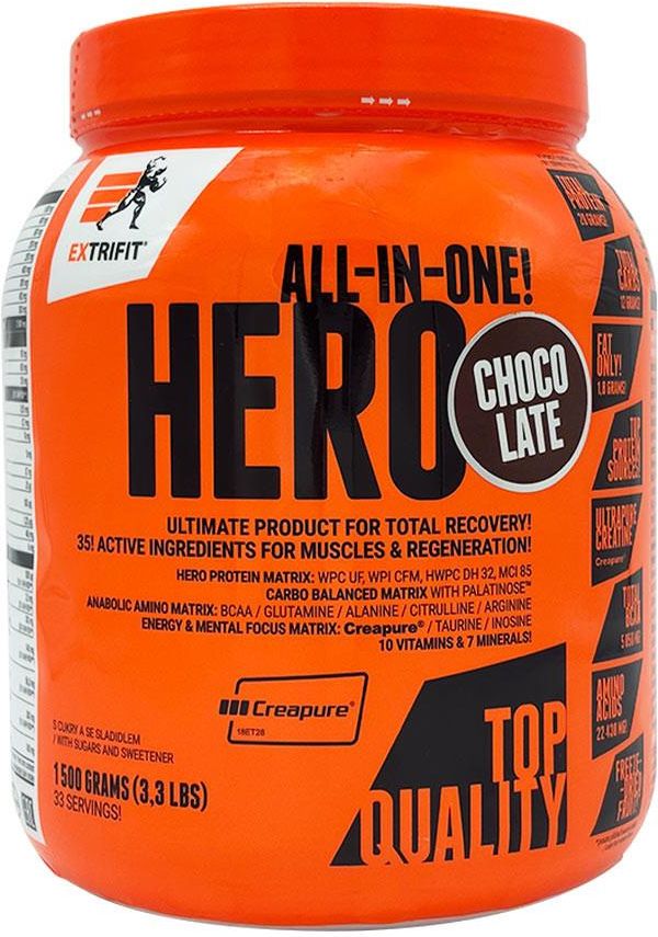 SUBSTANCJE DLA MIĘŚNI I REGENERACJI HERO rozpocznie regenerację i odbudowę masy mięśniowej natychmiast po treningu. Unikalny skład - zawartość 37 składników aktywnych! Ekskluzywne i najwyższej jakości źródła składników! Stosuj HERO po treningu - wspomoże wzrost i regenerację mięśni. HERO ZAWIERA NASTĘPUJĄCE MATRIXY MATRIX 6 BIAŁEK SERWATKOWYCH (WPC + CFM + HYDRO (3:2:1)) - DLA AKTYWNEGO WZROSTU I UTRZYMANIA MASY MIĘŚNIOWEJ ultrafiltrowany koncentrat białka serwatkowego, enzymatycznie hydrolizowany 80% koncentrat białek serwatkowych o stopniu hydrolizy DH 5, enzymatycznie hydrolizowany 80% koncentrat białek serwatkowych o stopniu hydrolizy DH 32, enzymatycznie hydrolizowany 90% izolat białka serwatkowego o stopniu hydrolizy DH 8, CFM 80 % mikrofiltrowany koncentrat białek serwatkowych, CFM 90% mikrofiltrowany izolat białka serwatkowego. MATRIX CARB 4 ZE STOPNIOWYM UWALNIANIEM JEDNOSTEK GLUKOZY (1:1:1:1) - DO DOSTARCZANIA ENERGII Izomaltuloza (PalatinoseTM), Skrobia kukurydziana, Maltodekstryna, Dekstroza. MATRYCA AMINOKWASOWA 21 - DLA EFEKTU ANTYKATABOLICZNEGO I REGENERACJI MIĘŚNI. MATRYCA AMINOKWASOWA W WOLNEJ POSTACI - 11000 MG/100G! L-Alanina w wolnej postaci, L-glutamina w postaci wolnej, DL-jabłczan L-cytruliny w postaci wolnej, L-arginina AKG w postaci wolnej, Tauryna w postaci wolnej 2000mg/100g, BCAA 2:1:1 (wolna forma i wiązanie peptydowe) - 11 237 mg/100g, L-leucyna 5290 mg/100g (w postaci wolnej 1111 mg/100g), L-Izoleucyna 3004 mg/100g (postać wolna 556 g/100g), L-walina 2943 mg/100g (w postaci wolnej 556 mg/100g). ENERGIA I SIŁA 3 MATRIX - DLA WZROSTU I REGENERACJI MIĘŚNI Creapure® - markowy niemiecki monohydrat kreatyny - 2000 mg/100g, Inozyna - energetyzator do pracy mięśni, Tauryna Free Form - substancja pobudzająca MATRIX MINERAŁÓW 3 - DLA SZYBKIEGO DOSTARCZENIA MINERAŁÓW W ICH IDEALNYCH FORMACH DLA DOBREGO FUNKCJONOWANIA NARZĄDÓW I REGENERACJI MIĘŚNI NATURALNA I DODANA ZAWARTOŚĆ MINERAŁÓW Magnez 162 mg/100 g (43% RDI) - przyczynia się do prawidłowego metabolizmu energetycznego i prawidłowej syntezy białek, przyczynia się do prawidłowego funkcjonowania układu nerwowego, równowagi elektrolitowej oraz zmniejszenia uczucia zmęczenia i znużenia, przyczynia się do prawidłowego funkcjonowania psychologicznego, Potas 610 mg/100 g (31% RDI) - przyczynia się do prawidłowego funkcjonowania mięśni, prawidłowego funkcjonowania układu nerwowego i utrzymania prawidłowego ciśnienia krwi, Wapń 400 mg/100 g (50% RDI) - przyczynia się do prawidłowego metabolizmu energetycznego, prawidłowego funkcjonowania mięśni i prawidłowego neuroprzekaźnictwa, przyczynia się do prawidłowego krzepnięcia krwi i utrzymania prawidłowego stanu kości i zębów, Fosfor 220 mg/100 g (31% RDI) - przyczynia się do prawidłowego metabolizmu energetycznego, prawidłowego funkcjonowania błon komórkowych oraz utrzymania prawidłowego stanu kości i zębów, Sód 548 mg/100 g - jeden z najważniejszych elektrolitów w organizmie człowieka, Cynk 6,5 mg/100 g (65% RDI) - przyczynia się do prawidłowego metabolizmu kwasowo-zasadowego, prawidłowego metabolizmu węglowodanów i kwasów tłuszczowych, prawidłowej syntezy DNA i syntezy białek, przyczynia się do prawidłowego funkcjonowania układu odpornościowego i ochrony komórek przed stresem oksydacyjnym, przyczynia się do utrzymania prawidłowego poziomu testosteronu we krwi oraz prawidłowej płodności i reprodukcji, Chrom 220 mcg/100g (556% RDI) - przyczynia się do prawidłowego metabolizmu makroskładników odżywczych i utrzymania prawidłowego poziomu glukozy we krwi WITAMINA 10 MATRIX - DO WITAMINIZACJI ZGODNIE Z ZALECANYMI DZIENNYMI WARTOŚCIAMI SPOŻYCIA (RDI) DODANA ZAWARTOŚĆ WITAMIN Witamina B1 1,2 mg/100 g (111% RDI) - przyczynia się do prawidłowego metabolizmu energetycznego, prawidłowego funkcjonowania układu nerwowego i serca oraz przyczynia się do prawidłowych funkcji psychologicznych, Witamina B2 1,6 mg/100 g (111% RDI) - przyczynia się do prawidłowego metabolizmu energetycznego, prawidłowego funkcjonowania układu nerwowego oraz zmniejszenia uczucia zmęczenia i znużenia, przyczynia się do ochrony komórek przed stresem oksydacyjnym, Witamina B3 17,8 mg/100 g (111% RDI) - przyczynia się do prawidłowego metabolizmu energetycznego, prawidłowego funkcjonowania układu nerwowego oraz zmniejszenia uczucia zmęczenia i znużenia, przyczynia się do prawidłowego funkcjonowania psychologicznego, Witamina B5 6,7 mg/100 g (111% RDI) - przyczynia się do prawidłowego metabolizmu energetycznego, do prawidłowej syntezy i metabolizmu hormonów steroidowych, witaminy D i niektórych neuroprzekaźników, przyczynia się do zmniejszenia uczucia zmęczenia i znużenia oraz do prawidłowych funkcji psychologicznych, Witamina B6 1,6 mg/100 g (111% RDI) - przyczynia się do prawidłowego metabolizmu energetycznego, prawidłowego metabolizmu białka i glikogenu, prawidłowego funkcjonowania układu nerwowego i regulacji aktywności hormonalnej, przyczynia się do prawidłowego funkcjonowania układu odpornościowego, zmniejszenia uczucia zmęczenia i znużenia oraz do prawidłowych funkcji psychologicznych, Biotyna 0,06 mg/100 g (111% RDI) - przyczynia się do normalnego metabolizmu energetycznego, normalnego funkcjonowania układu nerwowego, normalnego metabolizmu makroskładników odżywczych i normalnych funkcji psychologicznych, Kwas foliowy 0,22 mg/100 g (111% RDI) - przyczynia się do prawidłowej syntezy aminokwasów, prawidłowego tworzenia krwi i prawidłowego funkcjonowania układu odpornościowego, przyczynia się do zmniejszenia uczucia zmęczenia i znużenia oraz do prawidłowych funkcji psychologicznych, Witamina B12 0,00278 mg/100 g (111% RDI) - przyczynia się do normalnego metabolizmu energetycznego, normalnego funkcjonowania układu nerwowego i normalnych funkcji psychologicznych, przyczynia się do normalnego funkcjonowania układu odpor