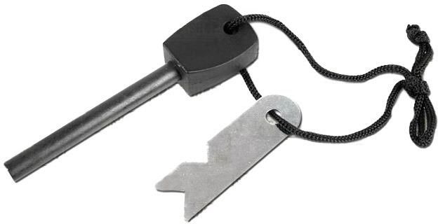 Krzesiwo survivalowe marki Fosco Industries umożliwia rozpalenie ognia bez użycia zapałek czy zapalniczki. Potarcie blaszką o pręt wytwarza iskrę, która z łatwością zapali suchą trawę, korę brzozy, watę lub inne łatwopalne materiały. Dzięki swoim kompaktowym rozmiarom, krzesiwo zmieści się choćby w kieszeni kurtki. Blaszka krzesiwa może pełnić kilka dodatkowych funkcji: z jednej strony producent umieścił linijkę o długości 50 mm, z drugiej skalę 1:100 000, pozwalającą na ocenę odległości o zakresie 5 km. Blaszkę i pręt łączy solidny sznurek, zapobiegający pogubieniu elementów i umożliwiający noszenie krzesiwa na nadgarstku lub przyczepienie go do ekwipunku. Cechy krzesiwa magnezowego Fosco Krzesiwo prętowo-magnezowe krzesze iskry o temperaturze około 3000°C; działa nawet w wilgotnym środowisku; blaszka wyposażona w linijkę długości 50 mm i skalę 1:100 000 o zakresie 5 km; gruby nylonowy sznurek zabezpieczający elementy przed rozdzieleniem i zgubieniem, może też służyć do założenia krzesiwa na nadgarstek.