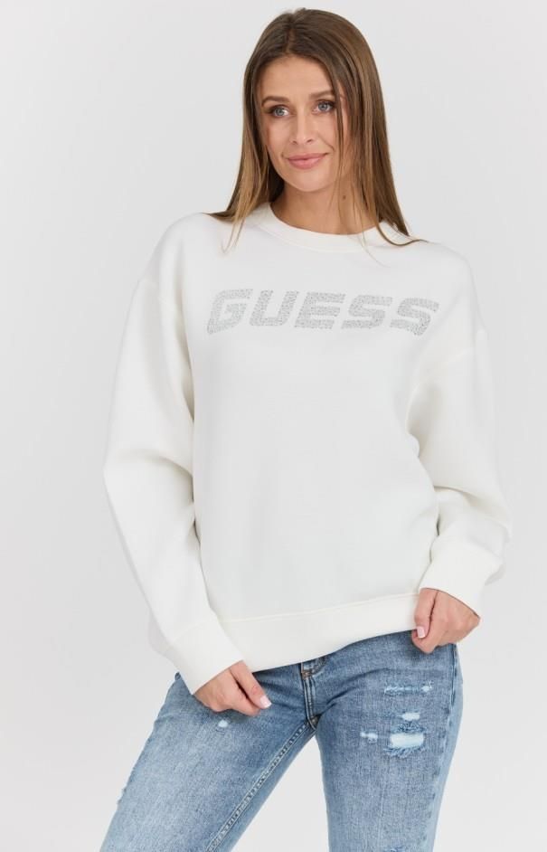GUESS Biała damska bluza z cyrkoniami Cecilia, Rozmiar L Błonie