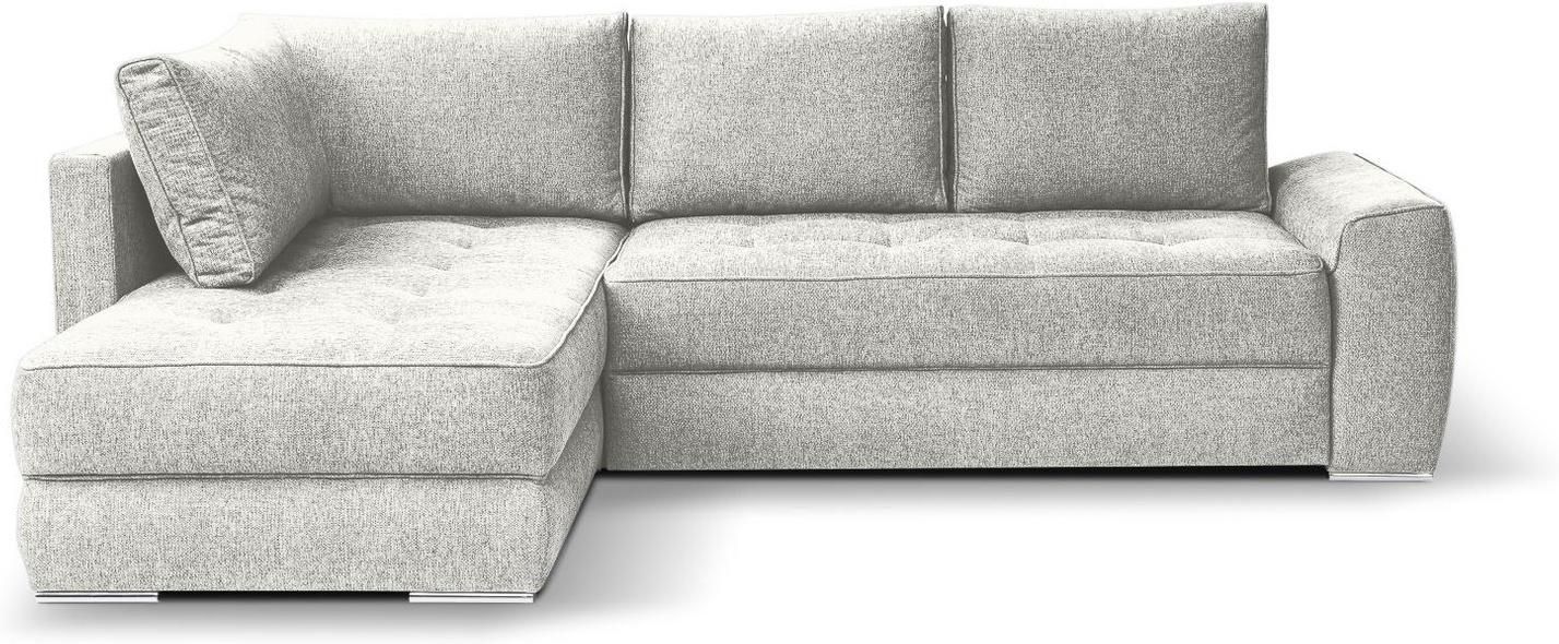 Narożnik Rabis z funkcją spania biały Argon 01 GR1 - elegancja i funkcjonalność Cieszący się popularnością narożnik Rabis z funkcją spania biały Argon 01 GR1 to propozycja dla tych, którzy cenią sobie nie tylko styl, ale również komfort i praktyczność. Charakteryzuje się uniwersalnością, dzięki czemu doskonale wpasuje się w każdą aranżację wnętrza. Możliwość montażu zarówno po prawej, jak i lewej stronie, pozwala na dopasowanie mebla do indywidualnych potrzeb. Nowoczesny narożnik z pojemnikiem na pościel Wysoka funkcjonalność narożnika Rabis z funkcją spania biały Argon 01 GR1 potwierdzona jest obecnością praktycznego pojemnika na pościel. Z łatwością pomieści on dodatkowe poduszki, koce czy pościel, zapewniając przy tym porządek i oszczędność miejsca. Intesi - komfort siedzenia dzięki pikowanemu siedzisku Marka Intesi zadbala o komfort użytkowania narożnika. Pikowane siedzisko, wypełnione pianką tapicerską, gwarantuje wygodę podczas siedzenia. Dodatkowo, cztery poduszki na oparciu mebla zwiększają komfort i dodają meblowi eleganckiego wyglądu. Biały narożnik - perfekcyjne połączenie materiałów Narożnik Rabis z funkcją spania biały Argon 01 GR1 to połączenie trwałości i stylu. Wykonany z połączenia drewna sosnowego, płyty MDF i płyty wiórowej, pokryty białą tkaniną, prezentuje się niezwykle elegancko. Nogi mebla z tworzywa sztucznego dodają mu nowoczesności. Co musisz wiedzieć przed podjęciem decyzji? Narożnik Rabis z funkcją spania biały Argon 01 GR1 to mebel uniwersalny - możemy go zamontować zarówno na lewą, jak i prawą stronę. Posiada praktyczny pojemnik na pościel, dzięki czemu zyskujemy dodatkowe miejsce do przechowywania. Pikowane siedzisko i cztery dodatkowe poduszki na oparciu zwiększają komfort użytkowania. Wykonany z połączenia drewna sosnowego, płyty MDF i płyty wiórowej, co gwarantuje trwałość i stabilność mebla. Pokryty białą tkaniną, która dodaje mu elegancji i stylu.