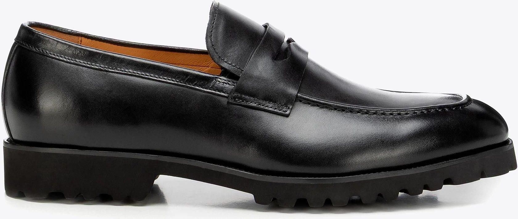Klasyczne męskie mokasyny ze skóry naturalnej czarne Błonie