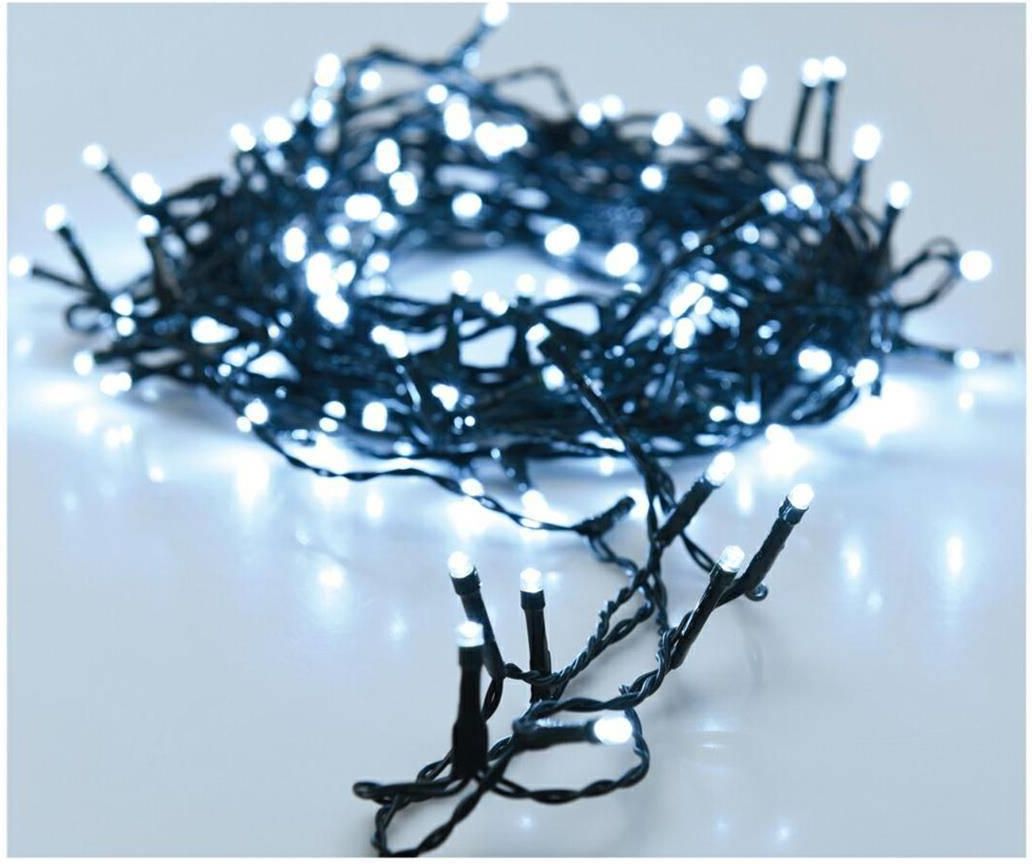 Lampki LED, które można stosować zarówno w domu, jak i na zewnątrz. Rozświetlą zimowy czas, wprowadzą świąteczną atmosferę oraz przyciągną wzrok każdego z naszych gości. Oświetlenie sprawdzi się do ozdobienia elewacji domu, balkonu, tarasu, ogrodu, czy witryn sklepowych. Swoją rolę spełni także wewnątrz – zdobiąc choinkę, parapet lub kominek. Oświetlenie świąteczne posiada zielony kabel ze 480 diodami LED świecącymi białym, zimnym światłem. Intensywny blask lampek pięknie rozświetla panujący nocą mrok i stwarza magiczny, bajkowy klimat. Lampki posiadają 8 trybów świecenia oraz funkcję zapamiętywania. Parametry produktu: liczba diod LED: 480 adapter (klasa ochrony) IP44 – zewnętrzne/wewnętrzne długość: 3600 cm długość kabla zasilającego: 300 cm rozstaw między lampkami: 7,5 cm długość żarówki:0,5 cm barwa światła: biały zimny zasilanie: sieciowe, IP44 8 trybów świecenia, funkcja zapamiętywania