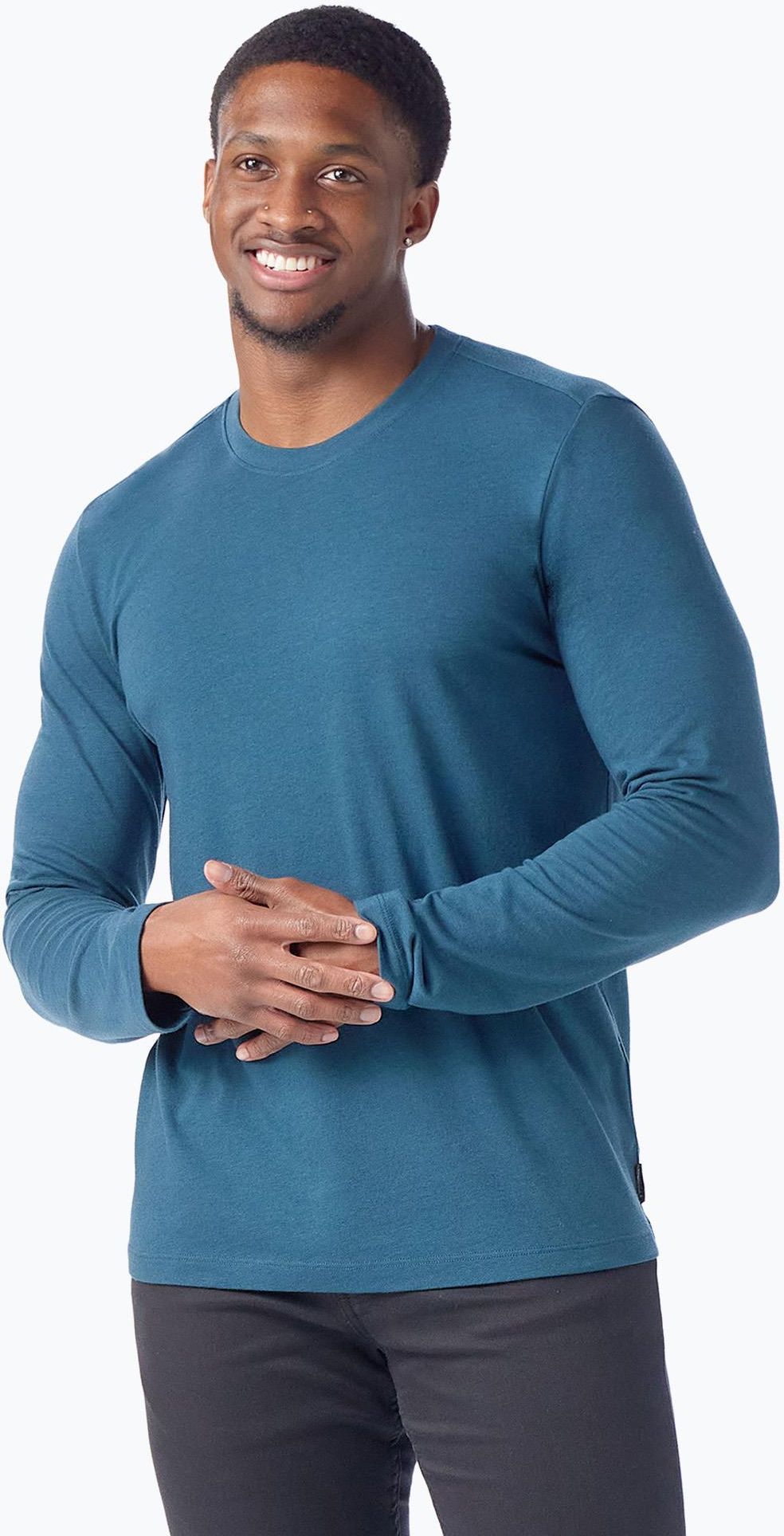 Bluza bez kaptura Smartwool Perfect Crew Long Sleeve Tee - twilight blue to produkt wykonany z wysokiej jakości materiałów, w tym 50% wełny merino oraz 50% organicznej bawełny. Przeznaczona jest do codziennego użytku i oferuje komfort i swobodę ruchów. Bluza Smartwool Perfect Crew Long Sleeve Tee …