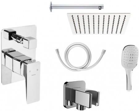Zestaw natryskowy podtynkowy Omnires Parma+ deszczownica 25 cm • Bateria podtynkowa wraz z elementem podtynkowym Omnires Parma PM7435CR• Rączka prysznicowa 3-funkcyjna OMNIRES DAVISX-RCR• Przyłącze kątowe z uchwytem metalowe OMNIRES 8815CR• Wąż prysznicowy gładki bezskrętny OMNIRES Silver-X150SL (150 cm)• Deszczownica kwadratowa 25 cm Hydroland Slim 25kw.25• Ramię ścienne do deszczownic 40 cm Hydroland DRAM40 Opis szczegółowy elementów zestawu: Bateria podtynkowa wraz z elementem podtynkowym Omnires Parma PM7435CR• Kompletna: część podtynkowa i natynkowa.• Wymiary rozetki: 11 cm x 15,4 cm• Minimalna głębokość w ścianie niezbędna do zabudowy baterii: 7 cm• Dwa wyjścia wody zmieszanej oraz dwa wejścia: na wodę ciepłą i zimną• Wykończenie: chrom• Gwarancja: 10 lat• Podłączenie: 1/2"• Materiał wykonania korpusu: Mosiądz Rączka prysznicowa 3-funkcyjna OMNIRES DAVISX-RCR• 3-funkcyjna, Strumienie: masaż, deszcz, mieszany• System Easy Clean zapobiega osadzaniu się brudu i osadów wapiennych; ułatwia także czyszczenie dysz• Wymiary: 10 x 26,4 cm• Wykończenie: chrom• Gwarancja: 2 lata Przyłącze kątowe z uchwytem metalowe OMNIRES 8815CR• Wykonane z mosiądzu.• Podłączenie: ½" / ½"• Wykończenie: chrom• Gwarancja: 2 lata Wąż prysznicowy gładki bezskrętny OMNIRES Silver-X150SL (150 cm)• długość 150 cm.• Końcówki 1/2" x 1/2", bezskrętne, • końcówka ułatwiająca przykręcanie.• Kolor: srebrny.• Gwarancja: 2 lata. Deszczownica kwadratowa 25 cm Hydroland Slim 25kw.25• wykonana ze stali nierdzewnej, • wykończenie chrom • Grubość 2 mm• Dysze wykonane z funkcją Anti-Calc zapobiegające osadzaniu się kamienia w dyszach.• Gwarancja: 2 lata Ramię ścienne do deszczownic 40 cm Hydroland DRAM40• Długość: 40 cm; podłączenie: ½" / ½"• wykonana ze stali nierdzewnej• Wykończenie: chrom• Gwarancja: 2 lata