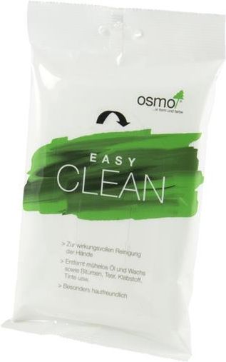 OSMO 8018 Easy Clean to wilgotne chusteczki do efektywnego mycia rąk, usuwają bez trudu olej i wosk, jak również bitum, smołę, atrament, klej itd., nie potrzeba wody do spłukania.UWAGA!!! Odbiór osobisty możliwy w salonie AMAR PARKIETY ul. Krynoliny 20, 03-699 Warszawa, od poniedziałku do piątku w godzinach 8.00 - 18.00. Prosimy o wcześniejszą informację telefoniczną lub mail, w celu przygotowania towaru do odbioru. Kontakt: 22 743 16 10, mail: sklep@amarparkiety.plJeśli z jakiegoś powodu w naszej ofercie nie znaleźli Państwo jakiegoś produktu, zachęcamy do kontaktu – jesteśmy pewni, że go dla Państwa zdobędziemy!
