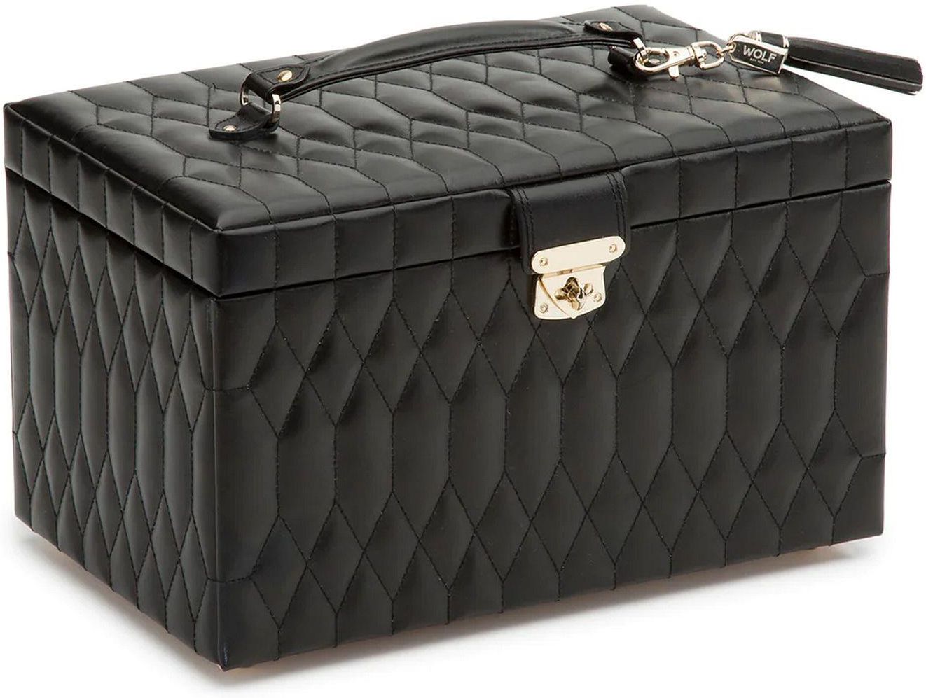 Obite pikowaną skórą pudełko Wolf Caroline 329671 to model wyposażony w 19 przegródek na drobiazg