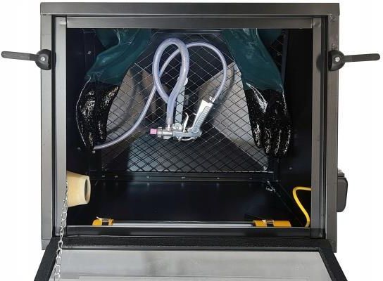 Kod towaru: OK-08.2101 Kompaktowa piaskarka kabinowa 90 l - Rooks OK-08.2101 Kompaktowa piaskarka z zamykaną komorą czyszczącą służy do dokładnego czyszczenia suchych części i mechanizmów samochodowych, technicznych i przemysłowych za pomocą piasku i czyściwa sypkiego (korundu), pod wysokim ciśnieniem. Kluczowe cechy Kompaktowa konstrukcja z zamykaną komorą czyszczącą Ciśnienie pracy: 4-8 BAR Pojemność kabiny: 90 l Pistolet z dyszami o średnicach 4-5-6-7 mm Maksymalne rozmiary czyszczonego podzespołu: 35 x 40 x 25 cm Dane techniczne Minimalne wymiary piaskarki: 50 x 65 x 50 cm Maksymalne rozmiary czyszczonego podzespołu: 35 x 40 x 25 cm Max ciśnienie pracy: 8,5 BAR Pojemność czynnika: 7,5 l Lampa robocza: 12V / 800 mA Zasilanie: 230 V / 50 Hz Zalecany przepływ podciśnienia: 200-350 l/min Piaskarka czyści z brudu, kurzu, rdzy, farby, zgorzeli nawet w miejscach trudnodostępnych. Idealnie sprawdza się przy czyszczeniu aluminium, stali, żeliwa, metali nieżelaznych, kompozytów. Posiada zamykaną, szczelną kabinę o pojemności 90 l z odpornymi rękawicami roboczymi, pistolet z dyszami w rozmiarze 4-5-6-7 mm średnicy, wentylację, regulację ciśnienia 4-8 BAR oraz oświetlenie wewnętrzne. Marka ROOKS to specjalistyczne narzędzia wykonane ze najlepszych stali stopowych, które gwarantują pracę w najtrudniejszych przemysłowych i serwisowych warunkach. Narzędzia ROOKS to propozycja dla mechaników i specjalistów od motoryzacji, mechaniki ogólnej oraz maszyn i urządzeń przemysłowych. ROOKS to inwestycja, która procentuje przez długi czas. Narzędzia dla motoryzacji marki ROOKS są mocne i szlachetne, co potwierdziło się już w wielu znakomitych serwisach samochodowych. Nowatorskie produkty i technologie napraw samochodów są wizytówką marki ROOKS.