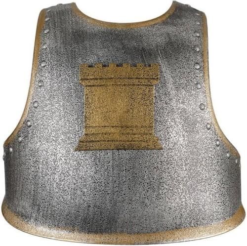 Souza! Zbroja rycerska napierśnik Roland Zbroja rycerska - napierśnik Roland holenderskiej marki Souza! to ochraniacz na tułów w imitującym metal, ciemnoszarym kolorze ze złotymi elementami – emblematem wieży zamkowej na przodzie i złotymi krawędziami. Zakładany jest na dwa ukośne, regulowane pasy, …