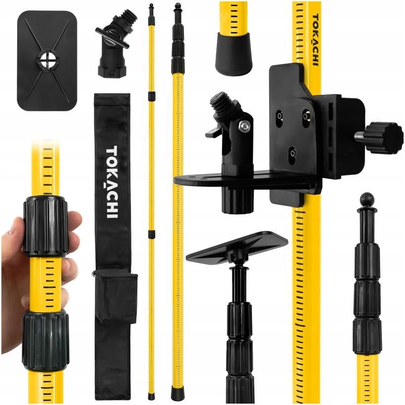 TYCZKA ROZPOROWA DO LASERA 3M DRĄŻEK POZIOMICY STATYW Z PODZIAŁKĄ + ADAPTER MAKSYMALNA PRECYZJA NA WYSOKOŚCIACH Statyw rozporowy | Tyczka | 285 cm | Nadrukowana podziałka | Adapter do skosów | Pokrowiec | Antypoślizgowy podnóżek | Teleskopowa konstrukcja | Gwint przyłączeniowy | Regulacja w poziomie | Platforma | Obrót 360° Tokachi QuickSet 285 Oferujemy statyw rozporowy o wysokości do 285 cm, który zapewnia niezbędne wsparcie dla Twojego lasera krzyżowego, poziomicy laserowej i innych przyrządów pomiarowych. Idealne rozwiązanie dla profesjonalistów i amatorów, którzy potrzebują precyzyjnego i elastycznego narzędzia do pomiarów w różnych warunkach. Co sprawia, że nasz statyw jest najlepszym wyborem? Teleskopowa regulacja – łatwe dostosowanie wysokości aż od 10 cm do 285 cm. Podziałka centymetrowa – precyzyjne ustawienia wysokości. Kompletny zestaw – zawiera etui, adapter do skosów, platformę na laser, gwint 5/8 cala i zakończenie sufitowe. Stabilność i wytrzymałość – wykonanie i konstrukcja zapewniają stabilność w trakcie używania. Obrotowe pokrętło – umożliwia obrót platformy o 360°, zapewniając pełną elastyczność ustawienia. GRATIS: adapter do skosów Co zawiera zestaw? Tyczka: główny element zestawu, który oferuje regulację wysokości od 10 cm do 285 cm dzięki teleskopowej konstrukcji. Adapter do skosów: wszechstronny adapter, który umożliwia ustawienie statywu pod różnymi kątami. Idealny do precyzyjnych pomiarów w trudnych warunkach lub przy nietypowych projektach. Platforma na urządzenie pomiarowe: stabilna platforma, która zapewnia bezpieczne mocowanie urządzenia pomiarowego. Gwint przyłączeniowy 5/8 cala: standardowy gwint, który zapewnia kompatybilność z wieloma urządzeniami pomiarowymi i akcesoriami. Zakończenie sufitowe: umożliwia bezpieczne przytwierdzenie statywu do sufitu, idealny do zastosowań w pomieszczeniach o różnych wymaganiach i pod różnym kątem. Etui: wygodne etui do przechowywania i transportu statywu oraz wszystkich dołączonych akcesoriów. Dzięki naszemu zestawowi możesz być pewien, że masz wszystko, co potrzebne do profesjonalnych pomiarów i montażu, co zwiększa komfort i efektywność pracy. Trwałość i stabilność to podstawa! Jakie cechy zapewniają trwałość i stabilność statywu? Teleskopowa budowa: statyw posiada teleskopową konstrukcję, która umożliwia płynne i precyzyjne dostosowanie wysokości. Aluminium: wykonanie statywu z wysokiej jakości aluminium przekłada się na jegolekkość oraz wyjątkową trwałość. Jego wytrzymałość na odkształcenia i uszkodzenia mechaniczne zwiększa stabilność statywu, eliminując ryzyko przesunięć czy chwiania podczas pracy. Odkryj zalety naszego statywu ciesz się wyjątkową trwałością oraz stabilnością podczas każdej pracy! Precyzyjna regulacja wysokości Nasz statyw rozporowy wyróżnia się zaawansowaną teleskopową budową, która umożliwia dokładne dostosowanie wysokości statywu do Twoich potrzeb. Jak działa teleskopowa regulacja? Zakres wysokości: statyw może być regulowany w zakresie aż od 10 cm do 285 cm. Dzięki temu możesz precyzyjnie ustawić go na pożądanej wysokości, niezależnie od rozmiaru pomieszczenia i wymagań pomiarowych. Płynna regulacja: konstrukcja pozwala na łatwe i płynne dostosowanie wysokości. System teleskopowy składa się z kilku segmentów, które można rozszerzać i składać w celu uzyskania optymalnej wysokości bez potrzeby stosowania dodatkowych narzędzi. Stabilność i bezpieczeństwo: mimo regulacji, statyw zapewnia solidną stabilność na każdej wysokości, dzięki precyzyjnie wykonanym złączom i blokadom, eliminując ryzyko niepożądanych przesunięć czy wibracji. Obrót o 360° i pozioma regulacja Przy podstawie mocowania platformy znajduje się pokrętło, umożliwiające obrót urządzenia o 360° a także jego regulację w poziomie. Obrót o 360°: platforma umożliwia obrót wokół własnej osi o 360°, co pozwala na pełną elastyczność w ustawieniu lasera. Poziomaregulacja: zastosowaliśmy możliwość poziomej regulacji, co jest kluczowe dla uzyskania idealnych linii poziomych w różnych zadaniach, takich jak montaż sufitów, układanie płytek czy instalacje elektryczne. Adapter do skosów - precyzyjna regulacja kątów dla linii ukośnych Do zestawu dołączamyadapter do skosów (gwint 5/8"), który umożliwia wygodne i precyzyjne regulowanie kątów. Jak działa adapter do skosów? Regulacja kątów: adapter umożliwia precyzyjne ustawienie lasera pod różnymi kątami, co pozwala na wyznaczanie dokładnych linii ukośnych. Łatwe ustawienie: wystarczy przesunąć i zablokować adapter w odpowiedniej pozycji, aby uzyskać pożądany kąt. Nadrukowana podziałka Nasza tyczkę wyposażyliśmy w nadrukowaną podziałkę centymetrową, która znacząco ułatwia precyzyjne ustawienie wysokości i pomiarów. Korzyści z zastosowania podziałki Dokładny pomiar: podziałka centymetrowa umieszczona jest wzdłuż teleskopowej części statywu, co pozwala na szybkie i łatwe odczytywanie wysokości ustawienia. Ustalenie optymalnej wysokości: eliminujesz potrzebę użycia dodatkowych narzędzi pomiarowych. Wygodne odliczanie: oznaczenia na podziałce są rozmieszczone co 1 cm, co umożliwia bardzo precyzyjne dostosowanie wysokości statywu. Pierwszy moduł ma możliwość blokady w przedziale 0-87,5 cm.* Drugi moduł 0-87 cm. Trzeci, ostatni moduł można zablokować w przedziale 0-84,5 cm. *mierzone od elementów złączeniowych Dane techniczne Nazwa: TOKACHI QuickSet 285 Zakres pracy: 10 - 285 cm Materiał wykonania: aluminium Rozmiar gwintu przyłączeniowego: 5/8" Średnica: 3 cm Podziałka [cm]: TAK Możliwość obrotu 360°: TAK Zakończenie sufitowe: TAK Platforma: TAK Antypoślizgowy podnóżek: TAK Etui w zestawie: TAK GRATIS: adapter do skosów❗️ Zawartość zestawu Statyw rozporowy QuickSet 285 Instrukcj