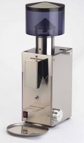 BEZZERA BB005TM 1 Prosty w obsłudze, trwały i efektywny w działaniu młynek żarnowy Bezzera BB005TM.Młynek przeznaczony jest przede wszystkim do użytku domowego, lecz również z powodzeniem sprawdzi się w małej kawiarni (jako np. drugi młynek na inną mieszankę). Młynek wyposażony jest w śrubę mikrometryczną oraz daje możliwość ustawienia czasu mielenia dla pojedynczego albo podwójengo espresso. Najważniejsze parametry: Korpus wykonany ze polerowanej stali nierdzewnej AISI 304 Stożkowe żarna o średnicy 48 mm wykonane z hartowanej stali Pojemność hoppera 250g napięcie: 230V moc: 100W Wymiary wysokość: 400mm szerokość: 130mm głębokość: 260mm waga netto: 4 kg Producent: BEZZERA dal 1901 (Milano); Italia Firma Café Silesia jest oficjalnym przedstawicielemmarki BEZZERA w Polsce