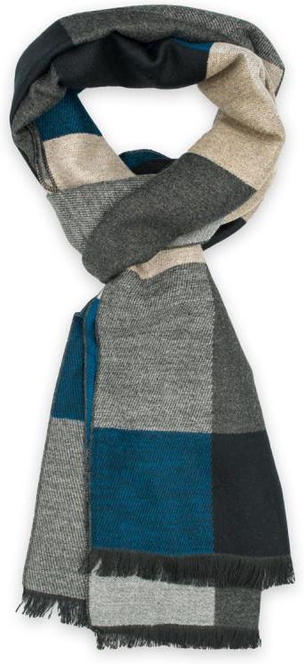 Ciepły szal z krótkimi frędzlami Ciepły szal w uniwersalnych kolorach. Urozmaici każdą kurtkę czy płaszcz. Zakończony krótkimi frędzlami. - Kolor: dwustronny - szara, grafitowa, czarna, beżowa i niebieska krata - Tkanina: 100% wiskoza - Długość: 180 cm - Szerokość: 31 cm - Gwarancja: 24 m-ce