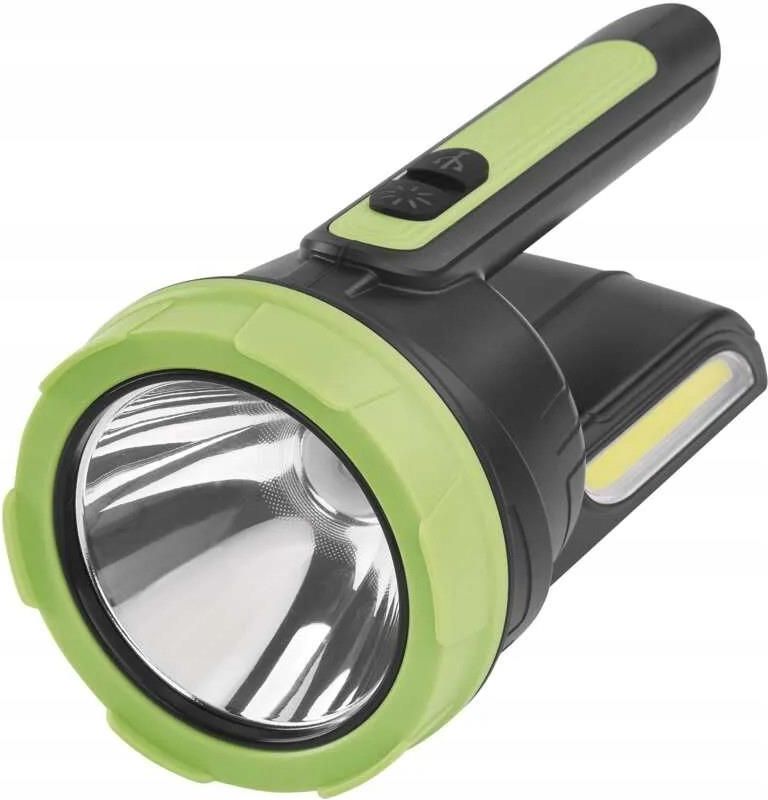 Latarka EMOS P2314 210lm LED+COB ładowalna Latarka EMOS P2312 z akumulatorem Li-ION, odporna jest na nieostrożne posługiwanie się (pył, brud) i jest przeznaczona do zastosowania w gospodarstwie domowym oraz na wolnym powietrzu (outdoor). Dioda OSRAM LED zapewnia dostateczny strumień świetlny o mocy do 750 lumenów. Wbudowany akumulator litowy 3,7V o pojemności 4000mAh, można ładować bezpośrednio w latarce, ewentualnie doładować z sieci 230V~ 50Hz albo z gniazdka samochodowego 12–24V DC. Akumulator wykorzystywany jest nie tylko do zasilania latarki. Dodatkowo, dzięki wyjściu USB, można korzystać z jego energii, jak z Power Banku, do ładowania Smartfonów, Tabletów itp. Ładowanie wbudowanego akumulatora odbywa się poprzez gniazdo micro-USB. Ponowne ładowanie akumulatora trwa 6,5 godziny. O stanie ładowania informuje dwukolorowy wskaźnik diodowy LED. Plastikowa obudowa z ABS, z praktycznym uchwytem do noszenia Odczepiany pasek na ramię do wygodnego przenoszenia Funkcje dodatkowe: Power Bank, ochrona akumulatora Światło skupione Akumulator bez efektu "pamięci" Ładowanie z sieci lub z zapalniczki samochodowej Ładowanie akumulatora bezpośrednio w latarce Zasilanie: akumulator Li-Ion 18650 Typ zasilania: 1 800 mAh/3,7 V Ładowalna: tak Źródło światła: SMD LED + COB LED Ilość trybów świecenia: 4 Tryby: SMD LED 100%, SMD LED 30%, SMD LED miganie, COB LED 100% Czas ładowania [h]: 3 Strumień świetlny [lm]: 210 Strumień świetlny: SMD LED 100% – 210lm, SMD LED 30% – 70lm, COB LED 100% – 190lm Zasięg [m]: 240 Zasięg: SMD LED 100% – 240m, SMD LED 30% – 120m, COB LED 100% – 20m Zoom: nie Czas świecenia [h]: 3-6 Czas świecenia detal: SMD LED 100% – 3h, SMD LED 30% – 4,5h, COB LED 100% – 6h Wskaźnik ładowania LED: tak Typ złącza: USB C Wyposażenie: kabel USB-C Funkcje dodatkowe: funkcja szybkiego wyłączania, funkcja ochrony akumulatora Kolor: czarno-zielony Materiał: tworzywo ABS Waga [g]: 281 Wymiary [mm]: 200 × 100 × 100 Gwarancja: 2-letnia