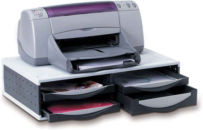 Podstawka pod drukarkę lub faks marki Fellowes. Ułatwia przechowywanie różnego typu i formatu papierów, bądź też materiałów eksploatacyjnych. Istnieje możliwość ustawienia półek w różnych pozycjach (4 szuflady w 8 pozycjach). Możliwość organizacji kabli (w 3 różnych rozmiarach) dzięki innowacyjnemu systemowi zaczepów. Wymiary (SZ x W x D): 13,6.00 x 53,8 x 36,2.