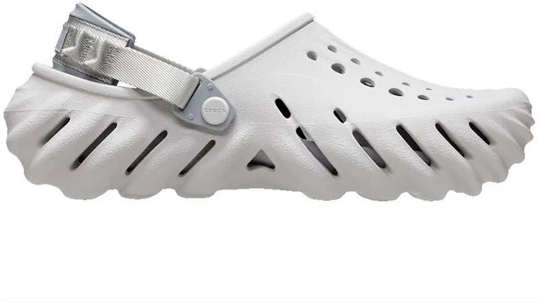 Klapki unisex Crocs X-Echo Clog 207937-1FT – szare Nowoczesne klapki Crocs z serii X-Echo Clog. Odważna konstrukcja tego obuwia wynosi ten model poza schematy i kreuje nowe trendy w świecie mody. Nowy, dynamiczny design sprawia, że trudno przejść obok tych klapek obojętnie. Model X-Echo to gwarancja wygody podczas ciepłych dni, który łatwo będzie dopasować do wielu letnich stylizacji. Dzięki dodatkowym otworkom wentylacyjnym buty są przewiewne i zapewniają utrzymanie odpowiedniej temperatury. Tylny pasek na pięcie dodatkowo wspiera stopę i zapobiega zsuwaniu się klapek. Model w całości zostały wykonane z materiału Croslite, który jest niezwykle lekki, co sprawia, że buty są jeszcze wygodniejsze. Uniwersalne klapki Crocs to doskonały wybór na lato, który będzie pasował do niejednej stylizacji. Model ten świetnie dopełni damskie spodenki, które znajdziesz w naszym sklepie. Specyfikacja: - wsuwana konstrukcja z materiału Croslite - pasek na pięcie - odporna na ścieranie, antypoślizgowa podeszwa - szybkoschnące - łatwe w czyszczeniu - nowoczesny design