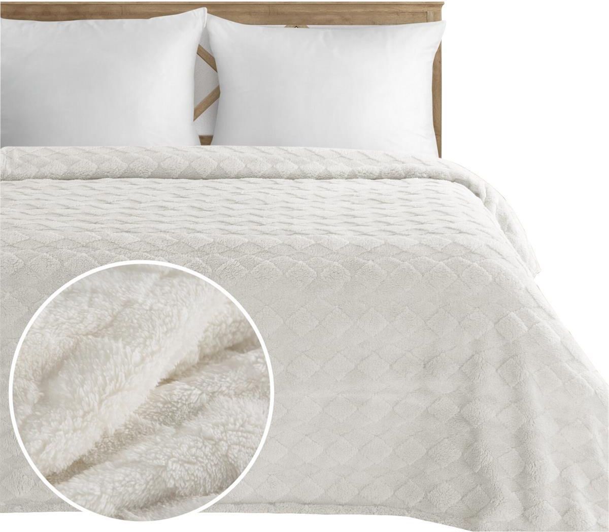Koc pled 200x220 Design91 mikrofibra efekt 3D NANCY krem Bobolice
