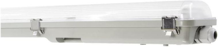 Oprawy hermetyczne DAMP PROOF HOUSING E to seria opraw, w których jako źródło światła wykorzystywane są świetlówki LED T8 zasilane bezpośrednio z sieci 230V. Korpus oprawy wykonany jest z wysokowytrzymałego tworzywa PC, a klosz z poliwęglanu. Oprawy te objęte są 3-letnią gwarancją producenta. Zalety produktu Łatwa i szybka instalacja Instalacja bez użycia narzędzi Trwała obudowa Zrównoważone rozwiązanie dzięki wymiennym źródłom światła 3-letnia gwarancja Obszary zastosowań Parkingi, magazyny, obszary produkcyjne Parkingi i przejścia podziemne Garaże Cechy produktu Obudowa oprawy, dostępna na 1 lub 2 tuby LED T8 Stopień ochrony: IP65 Dane techniczne: Rodzaj źródła światła: 2xT8 LED 1500mm Napięcie zasilania: 220...240V Długość: 1565mm Wysokośc: 65mm Szerokość: 102mm Waga: 1050g. Kolor obudowy: szary Zakres temperatur pracy: -20...+40oC Stopień szczelności: IP65 Klasa odporności na uderzenia: IK08