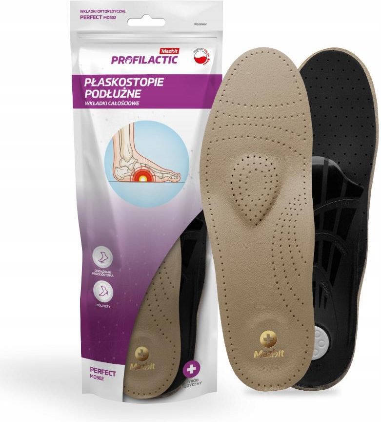 Profilowane wkładki do butów Uniwersalne wkładki profilowane przynoszą ulgę przy wielu problemach ze stawami, jak również poprawiają postawę podczas chodzenia lub biegania. Oferują one dodatkową amortyzację podczas aktywności o dużym natężeniu ruchu takich jak trekking czy wędrówki górskie. Konstrukcja tych wkładek pomaga zapewnić, że każdy postawiony krok jest wygodny i zrównoważony, zmniejszając ryzyko bólu lub obrażeń spowodowanych nieprawidłowym ustawieniem stóp. Wkładki PERFECT, to wyrób medyczny dedykowany osobom z płaskostopiem poprzecznym i podłużnym. Zastosowane w nich elastyczne wyprofilowanie wspiera prawidłową pozycję stopy. Miękka poduszka zlokalizowana pod piętą odpowiada za jej amortyzację, odciążenie oraz stabilizację. We wkładkach zastosowano również delikatną pelotę w kształcie kropli podpierającą II i III głowę kości śródstopia, dzięki czemu wspiera łuk poprzeczny. Zastosowana na całej długości wkładki pianka lateksowa, wzbogacona węglem aktywnym, pochłania nieprzyjemne zapachy oraz ma właściwości antybakteryjne i przeciwzapalne. Wkładki wyścielone są delikatną wyściółką z mikrofibry, która jest przyjazna nawet dla najwrażliwszej, alergicznej skóry, a dodatkowo łatwo utrzymać ją w czystości - do wyczyszczenia jej wystarczy użycie wilgotnej szmatki i delikatnego detergentu. Właściwości wkładek Perfect Wkładki do obuwia codziennego, sportowego oraz wizytowego Miękka struktura amortyzuje drgania oraz nacisk na stopę Wyściółka z mikrofibry, delikatna dla skóry Zaleca się stosowanie wkładek przy dolegliwościach takich jak: płaskostopie poprzeczne i podłużne, uraz lub otarcia pięty.