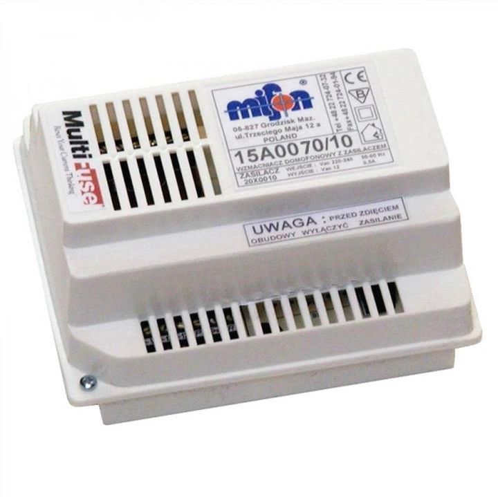 Wzmacniacz domofonowy z zasilaczem 10W oraz tonowym sygnałem wywołania 15A007010 MIFON z zabezpieczeniem "Multi-Fuse". Urządzenie umożliwia komunikacje pomiędzy dwoma abonentami (konieczne zastosowanie aparatów interkomowych wewnątrz lokalu). Maksymalna długość linii wzmacniacza wynosi około 50 …