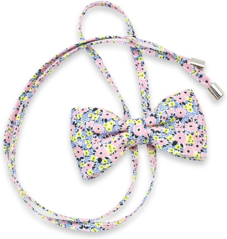 Mucha damska w niebieskie kropki i różowe kwiaty
