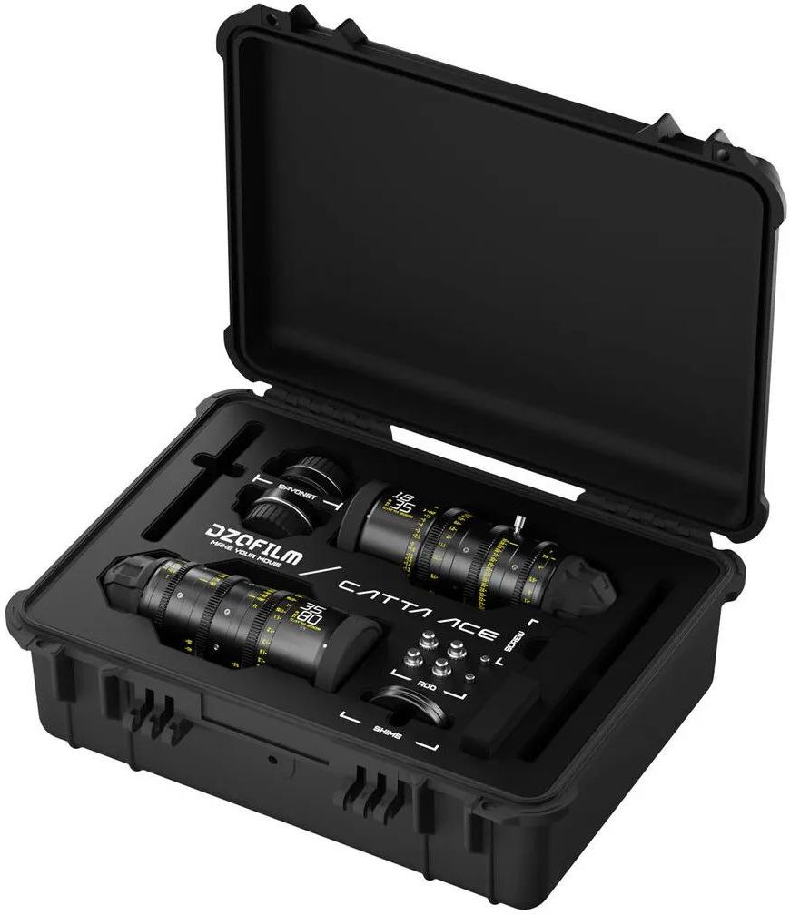 DZOFILM (DZO-FFCattaA1-BUNDLE) Catta Ace Bundle 18-35/35-80 T2.9 PL/EF with Case (black metal) Zestaw dwóch pełnoklatkowych obiektywów zmiennoogniskowych z wymiennymi mocowaniami (PL/EF)Zestaw zawiera czarny obiektyw zmiennoogniskowy Catta Ace PL-mount 18-35 mm T2.9, czarny obiektyw …