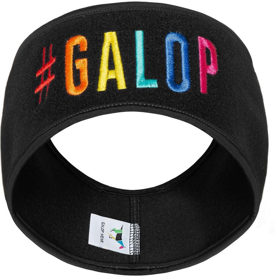 Opaska jeździecka GALOP WEAR tęczowy #Galop Opaska jeździecka idealnie chroniąca przed zimnem i wiatrem. Wykonana z wysokiej jakości elastycznego i miłego w dotyku polaru. Podtrzymuje włosy, nie powodując nadmiernego ucisku. Opaska posiada specjalne wyprofilowanie na uszy. Elastyczne obszycie dokładnie dopasowuje opaskę do głowy. Możliwość zastosowania z dowolnym typem kasku. Haftowany tęczowy napis #GALOP Rozmiar uniwersalny.