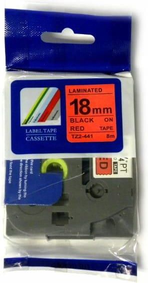 Taśma laminowana 18mm TZ2-441 Zamiennik taśm TZE-441 do drukarki etykiet P-touch Czarny tekst na czerwonej etykiecie Rozmiar etykiet 18mm Długość 8m taśmy Puty są w 100% zgodne z drukarkami etykiet P-touch Stosowny do PT-E300VP PT-E550VP PT-P710BT PT-D600VP PT-7500VP PT-7600VP PT-2420PC …