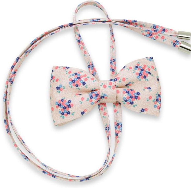 Mucha damska Willsoor Zestaw składający się z muchy gotowej opakowanej w kartonowe pudełko. Muchę swobodnie przesuwa się po paskach co sprawia, że można ją nosić na wiele sposobów: na szyi jako ozdoba spełniająca rolę naszyjnika, pod szyją jako tradycyjną muszkę, we włosach lub jako pasek. Elegancko zapakowany zestaw jest również idealnym pomysłem na prezent. - Tkanina: 100% satyna - Kolor muchy: różowa w drobne kolorowe kwiaty - Długość paska: 70cm - Wymiary: 12cm x 5,5cm - Opakowanie: kartonowe pudełko Willsoor - Producent: Willsoor
