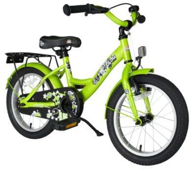 Markowy ROWER niemieckiej firmy "BIKE STAR" model klasyczny z kołami 16 cali (40.6 cm) kolor zielony z ciekawą grafiką model polecany dla chłopców Rower wyposażony w hamulec nożny, który jest zalecany do rowerów tej wielkości, ponieważ jest łatwym w użyciu i bardzo bezpiecznym wariantem hamowania. …