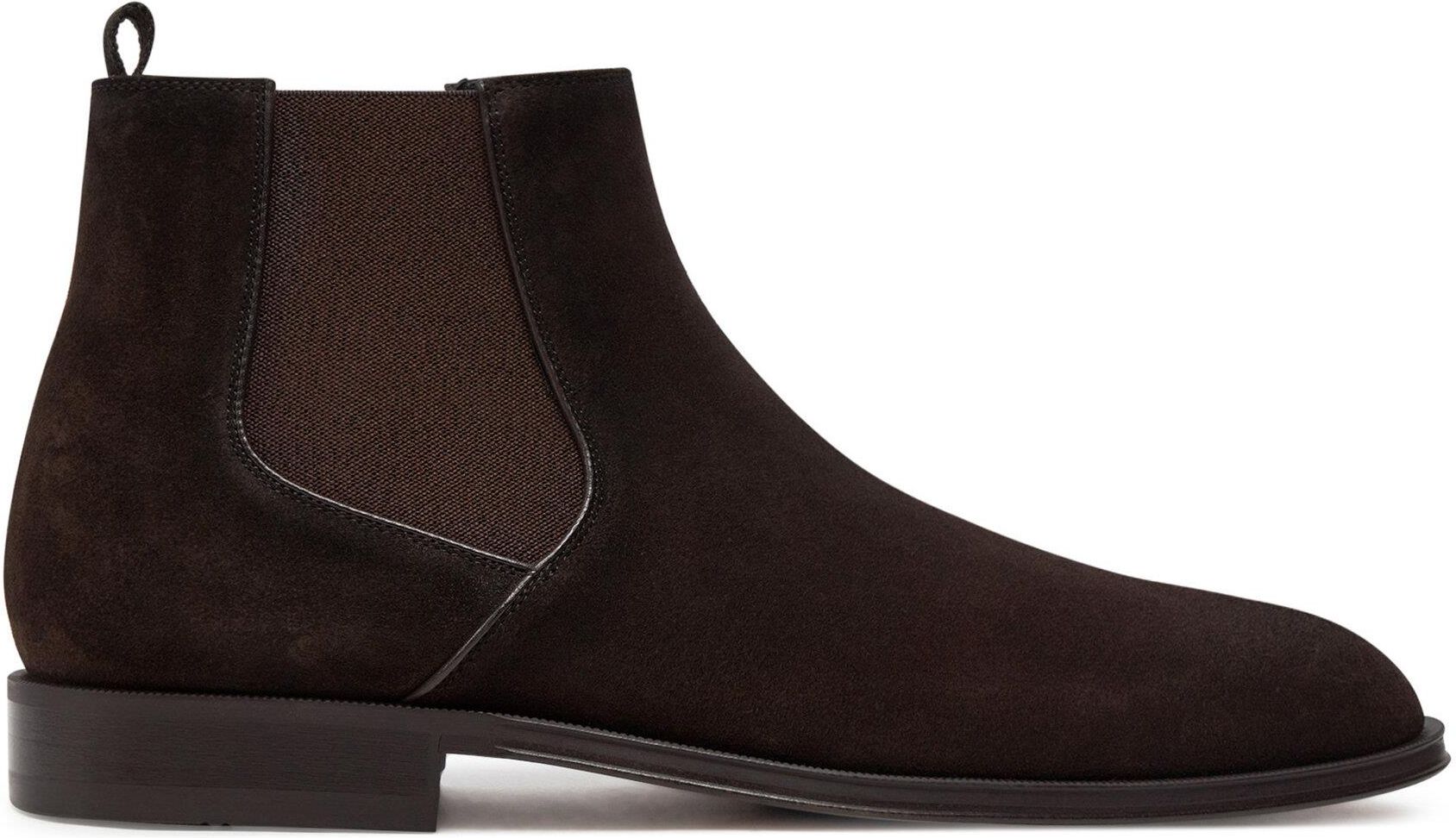 Dodaj do swojej garderoby odrobinę luksusu z męskimi sztybletami marki BOSS! Wykonane z najwyższej jakości skóry naturalnej zamszowej, te buty wyróżniają się elegancją i ponadczasowym stylem. Wnętrze z miękkiej skóry naturalnej zapewnia wyjątkowy komfort noszenia, a okrągły nosek dodaje klasycznego charakteru. Gumowy klin w cholewce nie tylko podkreśla ich design, ale także ułatwia dopasowanie do stopy. To idealny wybór na każdą okazję, kiedy chcesz wyglądać stylowo i czuć się wygodnie. Wybierz BOSS i postaw na doskonałą jakość, która nigdy nie zawodzi!