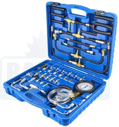 MIERNIK CIŚNIENIA PALIWA W SILNIKACH BENZYNOWYCH ZESTAW MAX OPIS PRODUKTU: Wytrzymała konstrukcja Manometr wyskalowany w jednostkach Bar i psi Zakres 0 - 10 Bar i 0 - 140 psi 1 Bar = 14,5 psi Pełen zestaw adapterów, przejściówek, przedłużek i szybkozłączy do większości samochodów na rynku. Po pomiarze wynik zostaje zatrzymany (wskazówka wskazuje pomiar). Zresetowanie wyniku następuje poprzez wciśnięcie przycisku na próbniku. Zestaw zawiera złączki i adaptery umożliwiające szerokie zastosowanie w samochodach europejskich, amerykańskich i japońskich.Wszystkie adaptery przyrządu pomiarowego układów paliwowych, szybkozłącza i złączki, są przystosowane do szybkiego i efektywnego testowania układów wtryskowych. Cały zestaw zamknięty jest w plastikowej walizce ułatwiającej przechowywanie i transport. Tester pracy układu paliwowego kompatybilny z markami: Acura, Alfa Romeo, Audi, BMW, Chrysler, Daihatsu, Eagle, Fiat, Ford, GM, Geo, Honda, Hyundai, Isuzu, Jeep, Jaguar, Mazda, Mercedes Benz, Mitsubishi, Nissan, Peugot, Porshe, Renault, Saab, Subaru, Suzuki, Toyota, Volvo. Próbnik do mierzenia ciśnienia paliwa w układach z wtryskiem benzyny Zestaw do pomiaru ciśnienia paliwa w układach z wtryskiem benzyny może być używany do wszystkich typów układów wtryskowych , w których przewidziano pomiar ciśnienia benzyny. Składa się z dwóch manometrów o zakresach MPa ,BAR-PSI- odpornego na działanie benzyny elastycznego przewodu wraz z zaworem odpowietrzającym, trójnika z zaworem kulowym, przewodów ciśnieniowych oraz kilkunastu różnorodnych redukcji. Pomiary ciśnień paliwa w silnikach z wtryskiem benzyny Układ K - i KE - Jetronic sis Układ KE - Jetronic kic Układ L - Jetronic liw Pomiar ciśnienia w pompach Pomiar powrotu ciśnienia. Układ ciśnień paliwa w systemach jednopunktowego wtrysku paliwa wiw-- OPEL MULTEC , BMW , VW , SKODA ,AUDI,FIAT,SEAT,FORD,PEUGEOT,CITROEN,RENAULT oraz wiele innych pojazdów.