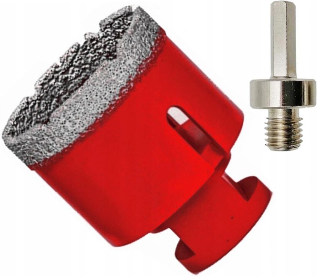 V04461 Wysoka jakość OTWORNICA KORONKA DIAMENTOWA DO GLAZURY 65 MM M14 + GRATIS ADAPTER NA WKRĘTARKĘ , wiertarkę renomowanej marki VORFAL Opis produktu: W zestawie adapter umożliwiający mocowanie otwornic również do wiertarki , wkrętarki . Gres Granit Marmur Ceramika Kamień naturalny SKŁAD ZESTAWU: Otwornica, koronka diamentowa do glazury M14 Gratis adapter M14 na wkrętarkę Całość zapakowana w plastikowej tubie DANE TECHNICZNE: Rozmiar: 65 mm Materiał korpusu: stal Długość całkowita otwornicy: 60 mm Gwint: M14 do szlifierek Długość nasypu diamentu: 12 mm Diamenty osadzone w technologii próżniowego lutowania Maksymalna prędkość robocza: 11 000 obrotów na minutę