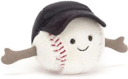 Wesoła Piłka Bejsbolowa Jellycat to bardzo mięciutka i przyjemna w dotyku przytulanka. Ma futerko w kolorze kremowym z czerwonymi detalami, miłą buźkę, grantową czapkę z daszkiem i sztruksowe rączki. Idealnie nadaje się do zabawy i przytulania. Zalecany wiek: 0+ Wymiary: 10 x 10 cm Kolor: kremowy, granatowy, czerwony Pranie ręczne: tak Producent: Jellycat