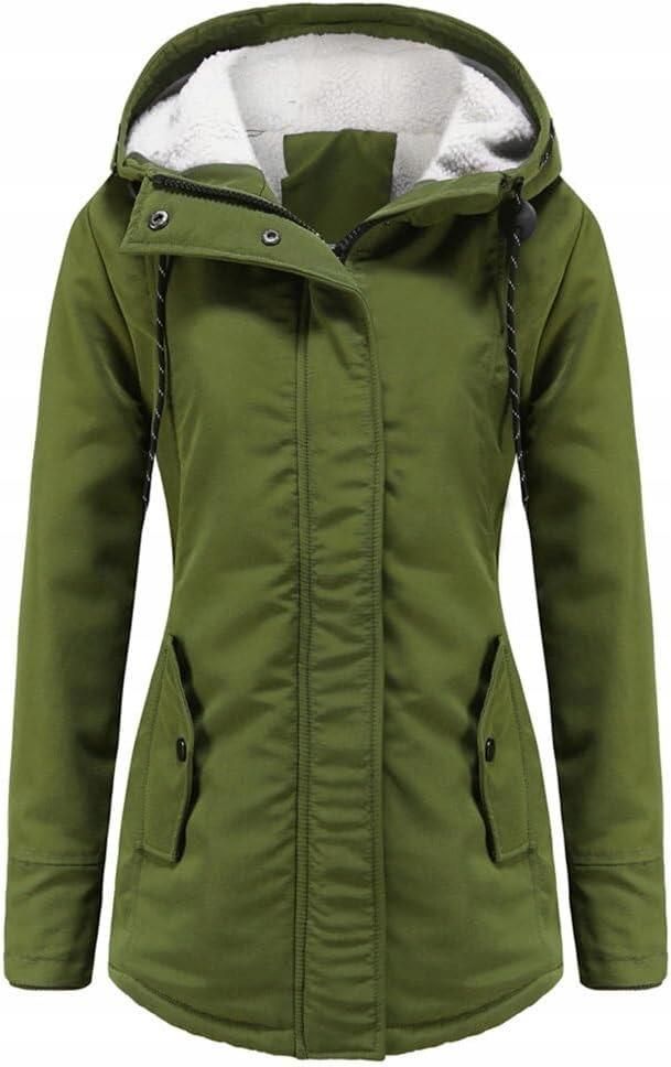 Damska parka YYNUDA z futerkiem i kapturem ✅ Elegancka kurtka parka z podszewką ze sztucznego futra idealna na jesień i okres przejściowy, ale także na zimę, przy niezbyt siarczystych mrozach. ✅ Styl sportowy kurtki można doskonale łączyć z wieloma stylizacjami! ✅ Zmienny krój dzięki wewnętrznemu ściągaczowi w talii pozwoli dopasować kurtkę do różnych sylwetek. ✅ Duży kaptur osłoni głowę i twarz od zimna, deszczu lub śniegu. ✅ Wyposażona w zapinane kieszenie boczne do przechowywania drobiazgów. ROZMIAR S Obwód klatki piersiowej: 104 cm Ramiona: 42 cm Długość: 80 cm Rękawy: 63 cm