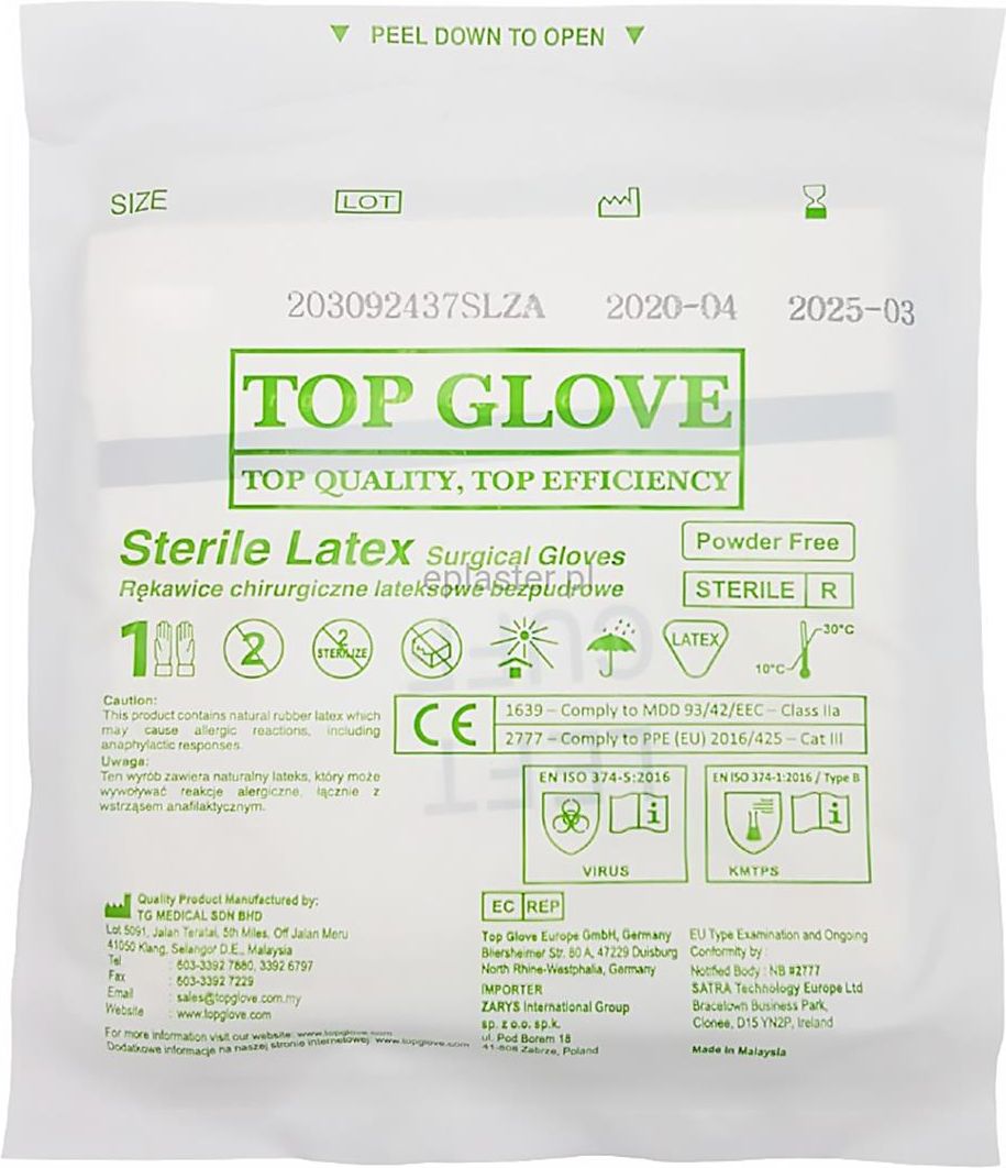 Zarys Rękawice Chirurgiczne Lateksowe Bezpudrowe Top Glove 1 Para 7,5 Bobolice
