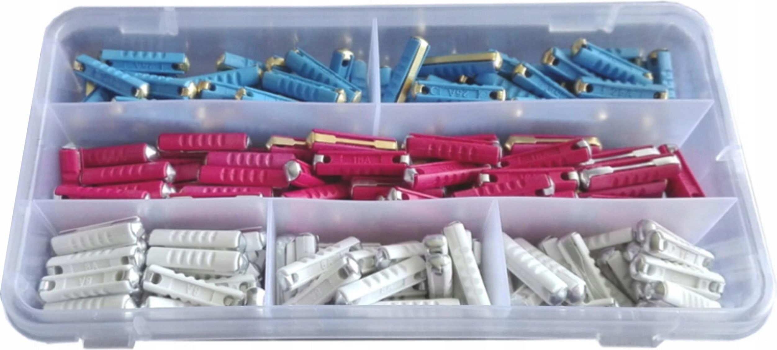 ZESTAW BEZPIECZNIKÓW CYLINDRYCZNYCH 180szt F01148 Bezpieczniki chronią instalacje elektryczną w samochodzie przed przeciążeniem. Zestaw zawiera: 8A - 60 szt 16A - 60 szt 25A - 60 szt Idealny zestaw dla mechaników w serwisach elektrycznych, elektronicznych, samochodowych itp. i nie tylko. Bezpieczniki cylindryczne topikowe – w bardzo praktycznym plastikowym sortowniku.