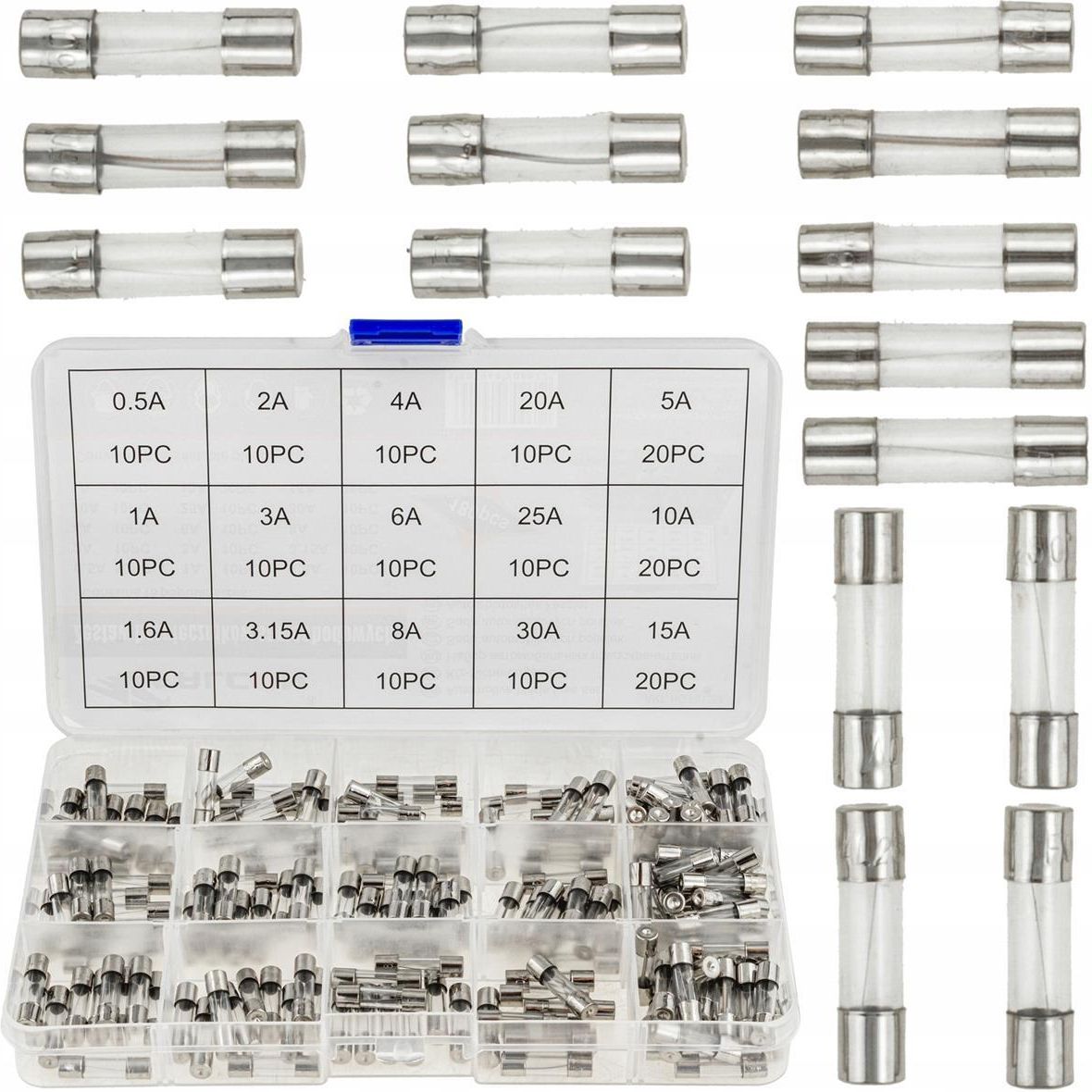ZESTAW BEZPIECZNIKÓW TOPIKOWYCH SZKLANYCH SZKLANE 0,5-30A 180 SZTUK 6X30MM Bobolice