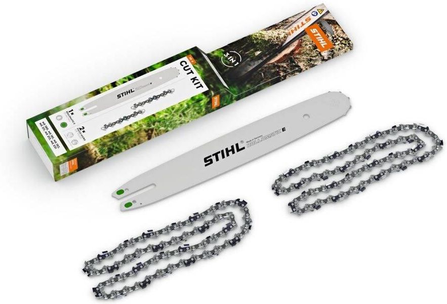 Cut Kit 4: zestaw prowadnica i 2 x łańcuch do STIHL MS 180, MS 181, MS 182, MS 212, MS 230, MS 231, MS 250, MS 251 Nawet najlepsza piła łańcuchowa może z czasem ulec stępieniu. Jeśli jednak nie ma możliwości naostrzenia piły łańcuchowej podczas pracy lub jeśli wymiany wymaga cały zestaw tnący – mamy dla Ciebie odpowiednie rozwiązanie. Zestawy STIHL Cut Kit to atrakcyjne pakiety promocyjne dla konkretnych maszyn, składające się z dwóch pił łańcuchowych i jednej prowadnicy. Dzięki temu użytkownik zawsze i wszędzie ma pod ręką zestaw tnący optymalnie dopasowany do pilarki łańcuchowej lub przecinarki GTA 26. Jest więc zawsze w pełni gotowy do pracy! Elementy zestawu 2 x piła łańcuchowa STIHL 3/8" P Picco Micro 3 (PM3, 1,3 mm) 1 x prowadnica STIHL Rollomatic E, 3/8" P, 1,3 mm (35 cm)