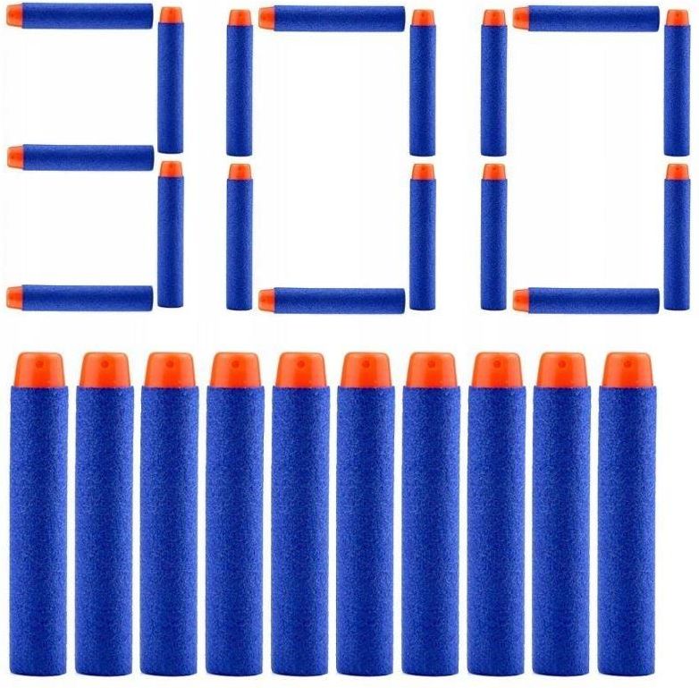 300 strzałek do wyrzutni Nerf N-Strike Elite Doskonała zabawa dla każdego chłopca i dziewczynki Bezpieczne strzałki Dla dzieci od 8 roku życia Wymiary strzałki: średnica 1,2 cm, długość 7 cm Kolor: niebieski Zestaw: 200 strzałek do wyrzutni Nerf N-Strike Elite Postaw na jakość! Nasze strzałki zbudowane są z wysokiej jakości materiałów, dzięki czemu mogą być użytkowane przez bardzo długi czas. Sprężysta pianka Przez zastosowanie sprężystej pianki strzałki nie deformują się i utrzymują pierwotny kształt przez długi czas. Dzięki temu nie zacinają się w wyrzutni i pozwalają na dalekie strzały. Kompatybilne z wszystkimi wyrzutniami Nerf N-Strike Strzałki pasują do wszystkich wyrzutni Nerf oprócz wyrzutni z serii Mega (duże pomarańczowe strzałki) Strzałki zbudowane są wysokiej jakości z elastycznej pianki oraz gumowej głowicy, która jest pusta w środku.