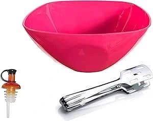 Produkt fabrycznie nowy, nieużywany w oryginalnym opakowaniu.Przygotowywanie sałatek staje się przyjemniejsze dzięki naszemu zestawowi przyborów kuchennych. Miska Różowa:Wymiary: 23x10 cm - idealne rozmiary na ulubione sałatki.Szczypce:Szczypce o ergonomicznym kształcie, zapewniające wygodne użytkowanie.Wymiary: 19.7 x 3.6 cm Materiał: Wysokiej jakości tworzywo sztuczne
