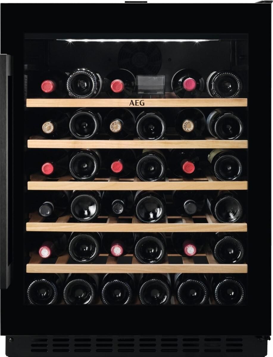 Chłodziarka do wina do zabudowy AEG AWS4052B5B Czarny 5000 Funkcje Wysokość wnęki: 822 mm Pojemność netto chłodziarki: 145 l Elektroniczne sterowanie temperaturą ze wskaźnikami cyfrowymi Chłodzenie dynamiczne Oświetlenie chłodziarki: wewnętrzne LED Półki chłodziarki: 5 pełnej szerokości, drewniane …