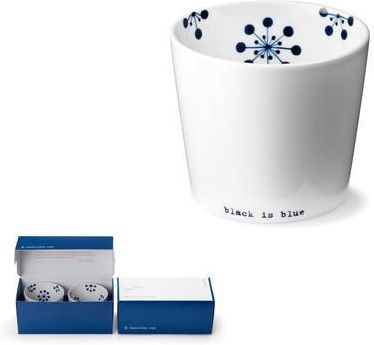 Porcelanowy, biało-niebieski, ręcznie zdobiony komplet kubków, z serii Black is Blue od Anne Black. Przez swój delikatny wzór nada klasy i uroku każdemu stołowi, polecamy każdemu kto gustuje w dobrym designie. To idealny pomysł na prezent dla dwojga.