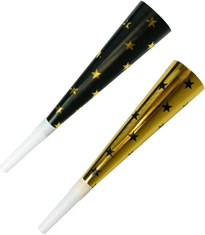 Trąbki Glam Party - oryginalny, papierowy dodatek urozmaicający każdą imprezę Niezastąpiony atrybut każdej udanej zabawy, trąbki Glam Party to stylowe, papierowe tuby w czerni i złocie, ozdobione gwiazdkami. Unikalne, estetycznie wykonane, zakończone specjalnym plastikowym ustnikiem dla wygodnego użytkowania. To nie tylko gwarantowany dźwięk, ale również element dekoracyjny, który doda blasku każdej imprezie. Te trąbki świetnie sprawdzają się zarówno podczas uroczystych urodzin, czyli na cześć solenizanta, jak i podczas magicznej nocy Sylwestrowej, witając Nowy Rok z hukiem i fanfarą. Trąbki Glam Party mają długość 20 cm, co sprawia, że są łatwe do przenoszenia i używania. W jednym opakowaniu znajdziesz cztery takie trąbki, dzięki czemu mogą się nimi cieszyć różne osoby na twojej imprezie. Hitem na każdej imprezie są trąbki Glam Party, które nie tylko dodają zabawy, ale też stanowią stylowy element dekoracyjny. EAN: 5902934238861