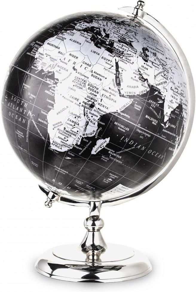 Dekoracja w kształcie globusa DUNYA to elegancki dodatek do salonu czy domowej biblioteki. Globus został wykonany z metalu, ma 45 cm wysokości. Jest koloru czarnego ze srebrnymi elementami przedstawiającymi kontynenty na świecie. Dodatek dobrze wpasuje się we wnętrzach w stylu klasycznym, nowoczesnym, loftowym i art deco. Dekoracja w kształcie globusa DUNYA jest świetnym prezentem dla każdego podróżnika! Informacje o produkcie Rozmiar 45x29x30 Kolor czarny, srebrny Materiał metal, tworzywo